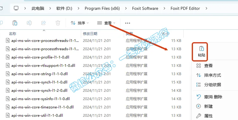 9.在打开的文件夹空白处,鼠标右键【粘贴】刚才复制的文件