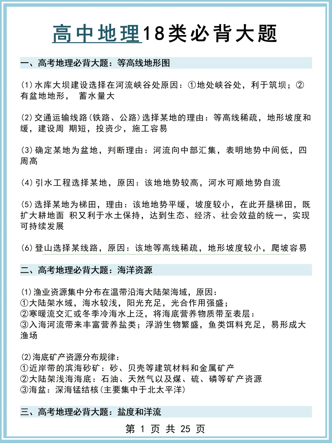 所以今天给大家整理了《高中地理18类必背大题》!建议人手一份