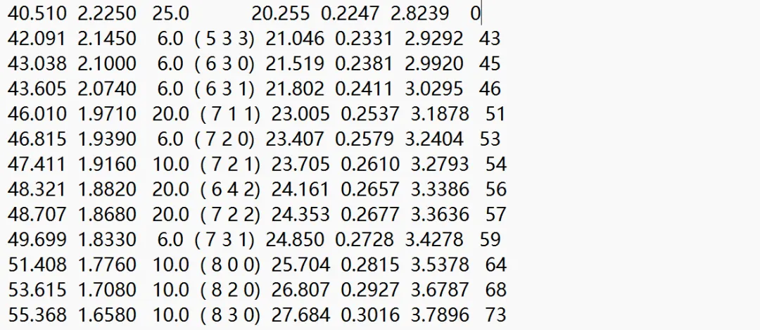28.966 3.0800 10.0 ( 4 2 1) 14.483 0.1623 2.0400 21