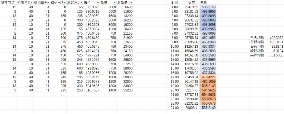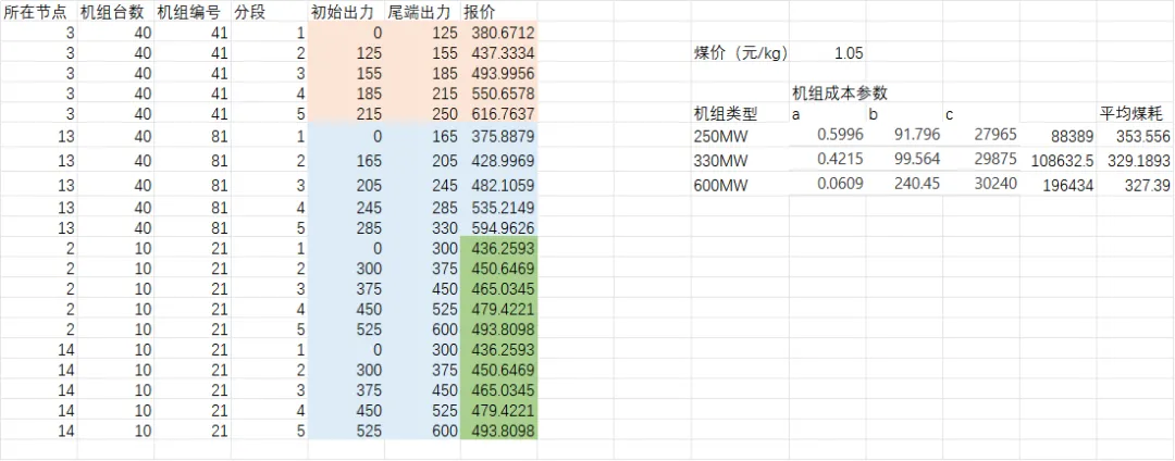 ✅ 机组报价与电价出清多台火电机组(250MW/330MW/600MW)分段报价,按边际报价形成实时电价。