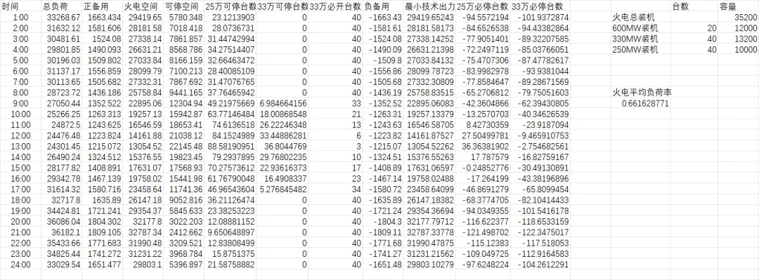 ✅ 负荷计算与备用管理正负备用、最小技术出力、启停空间……贴近调度实际逻辑。
