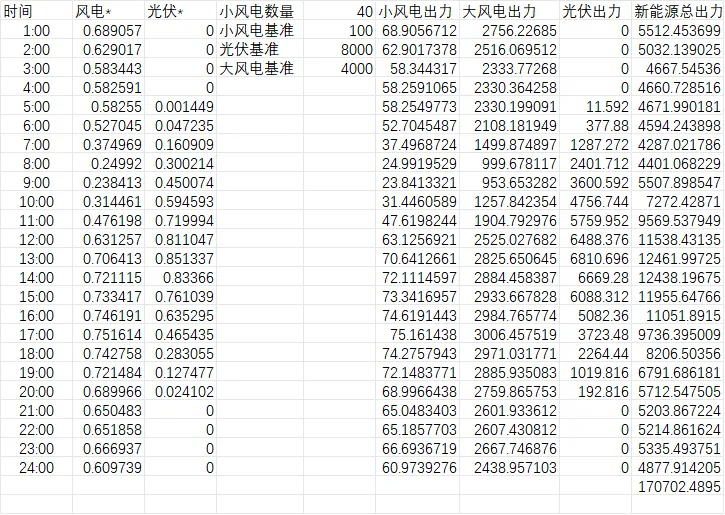 ✅ 新能源设置风电+光伏逐时出力建模,直观展示新能源消纳对系统净负荷的影响。