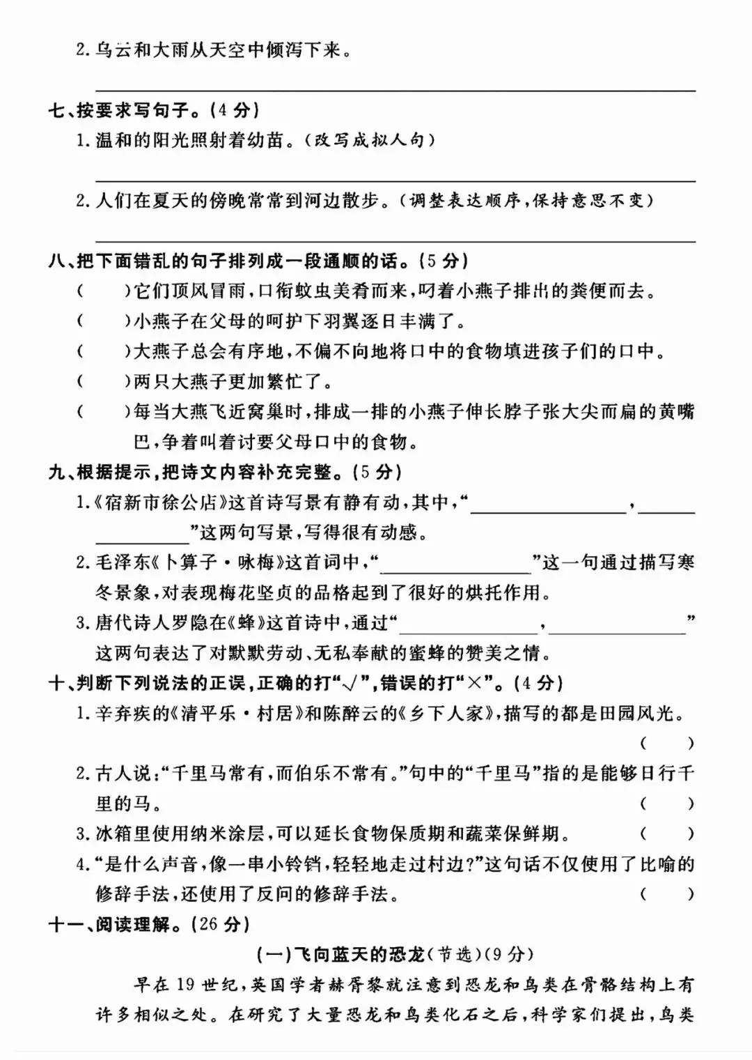 大家好,我是多雅妈妈,今天分享的是2026新四年级下册语文期中测试卷,有答案可打印