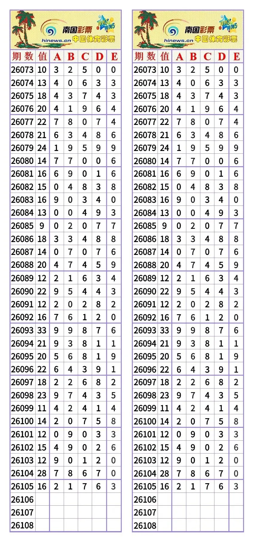 排列5第106期空模板| 上期26105期开奖号码:2176 3