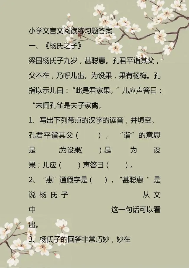 可打印丨小学语文文言文阅读练习题,转发给孩子练习!朗读君提醒点击图片跳转至小程序即可【下载打印】▼在学生学习这些知识的时候,不要忘记提升一下自己的文言文水平,在小学的时候,语文主要接触到的古文无非就是古诗词,对于文言文的了解仅仅局限在表面上。而文言文在初中的时候,地位是相当高的,考试的时候分值很高,如果那时候文言文的水平不行的话,语文要拿高分就很困难了。所以在小学阶段,能将文言文的那些简单的基础掌握好是有诸多好处的。对此,这里也给大家带来了小学语文文言文阅读练习题及参考答案,备一份提升语文成绩!朗读君提醒点击图片跳转至小程序即可【下载打印】▼最后,觉得今天小编分享的资料有用,底部点亮“在看”,文末左下角“分享”给更多的家长们和同学们哦~更多语文工具点击下方卡片,开始使用▼