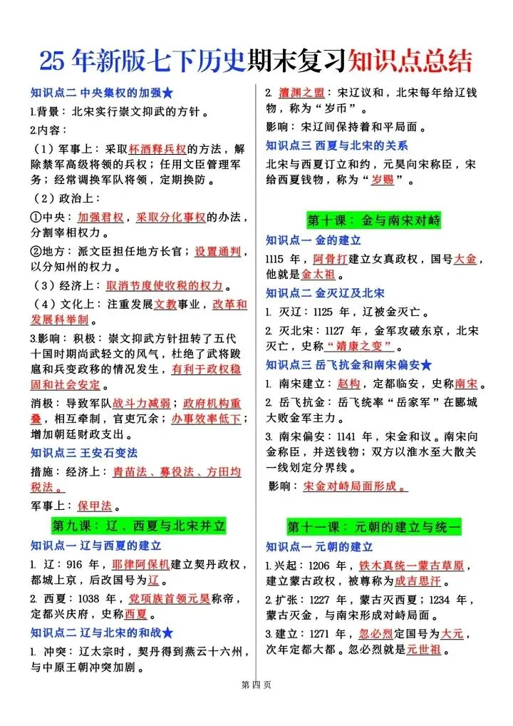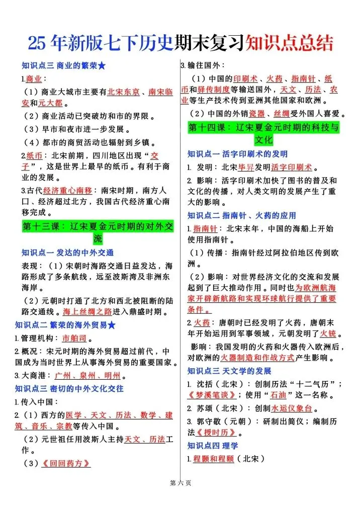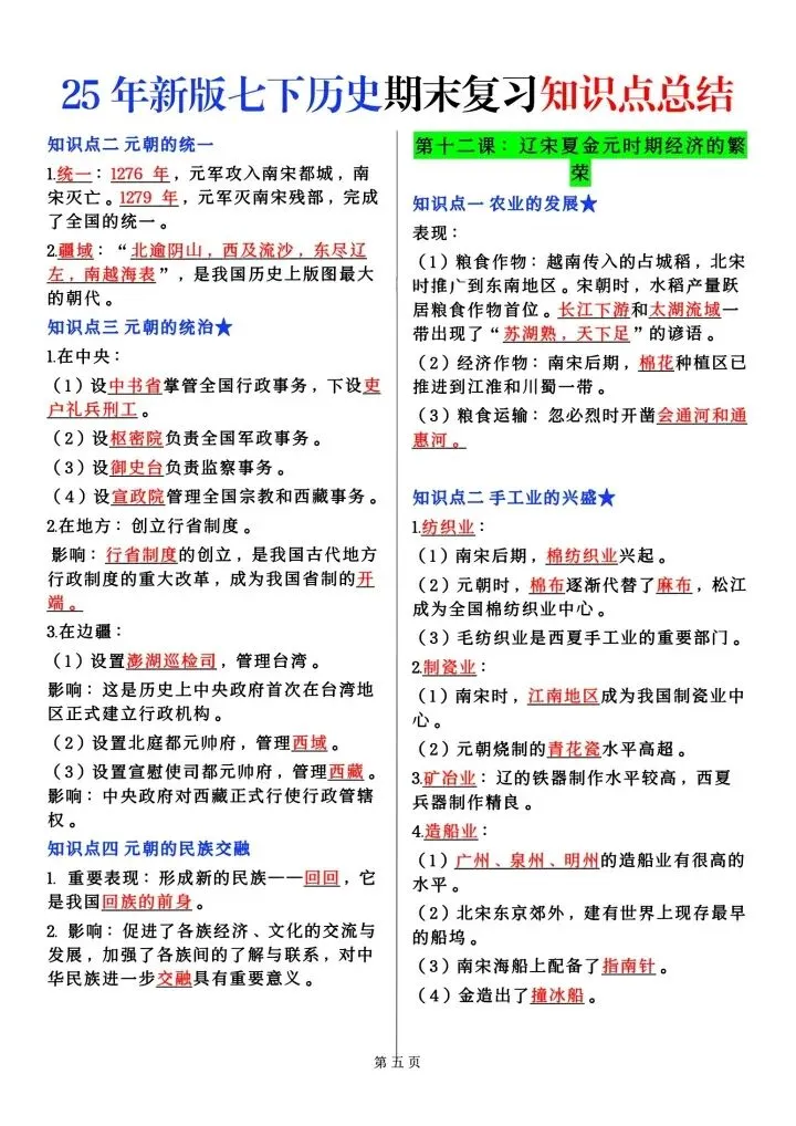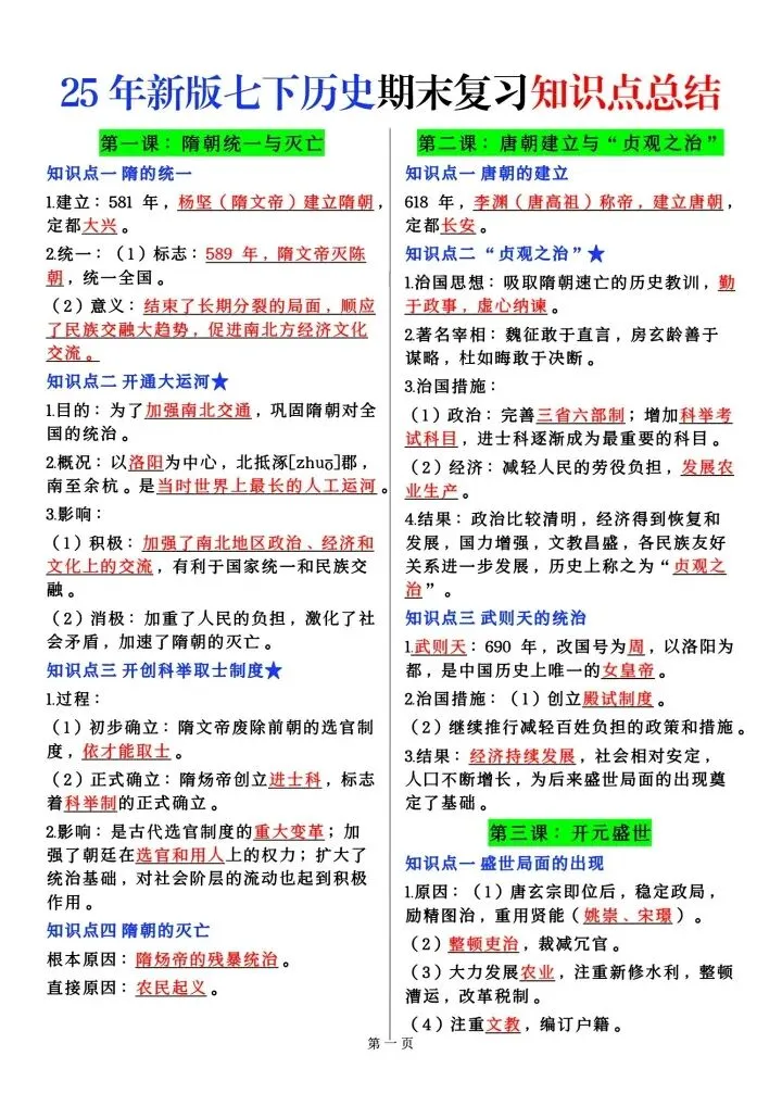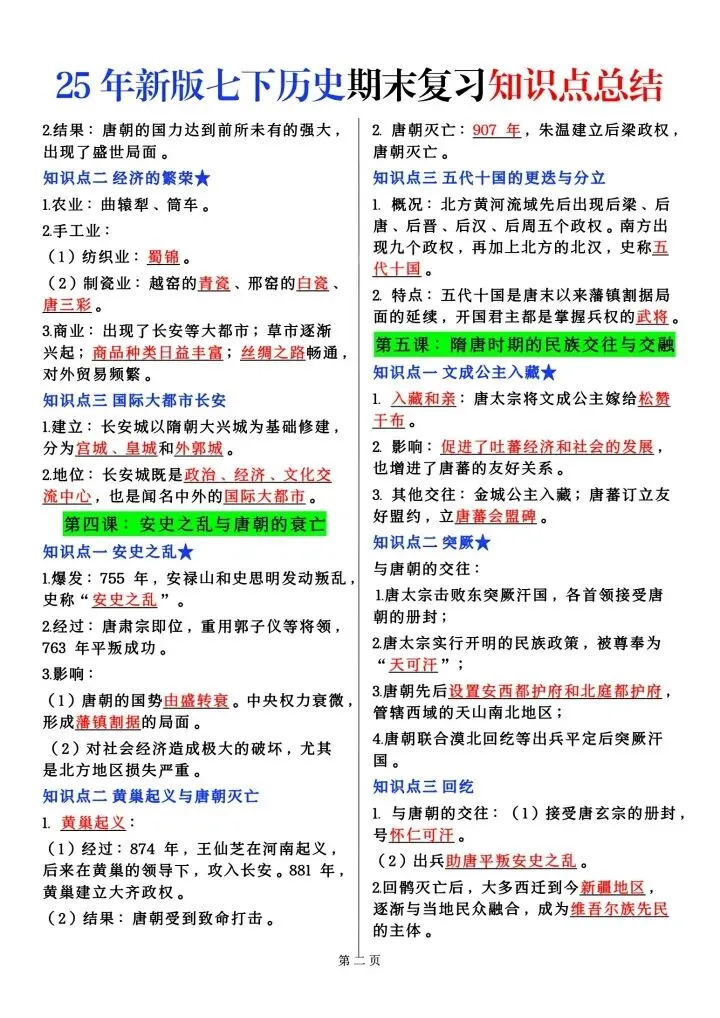 今日分享七年级下册历史期末复习知识点总结(完整电子版可打印)!高清可打印,每日轻量练习,拒绝无效刷题,用系统化资料筑牢学科基础,让假期成为提升的黄金期,开学轻松领跑。