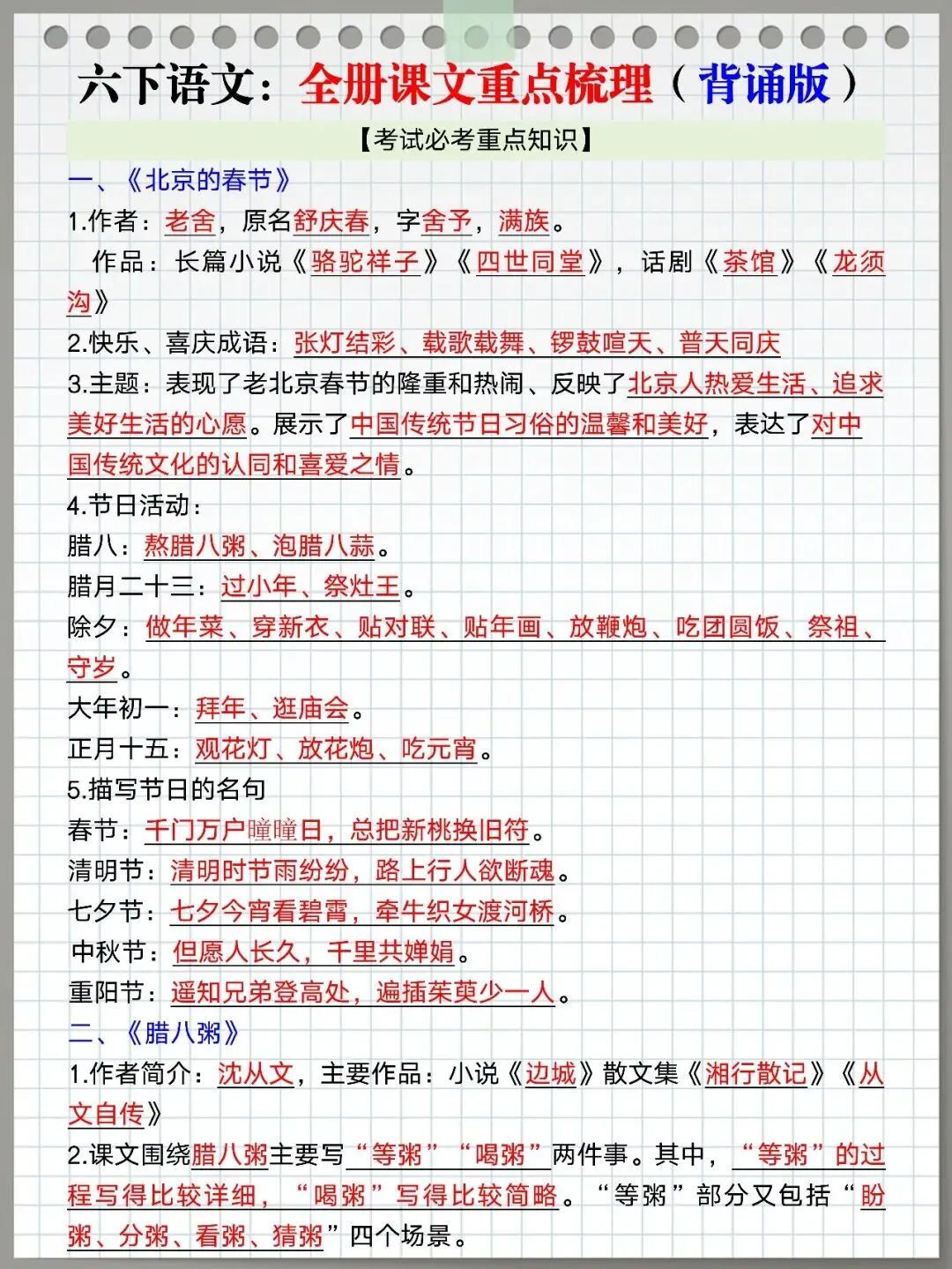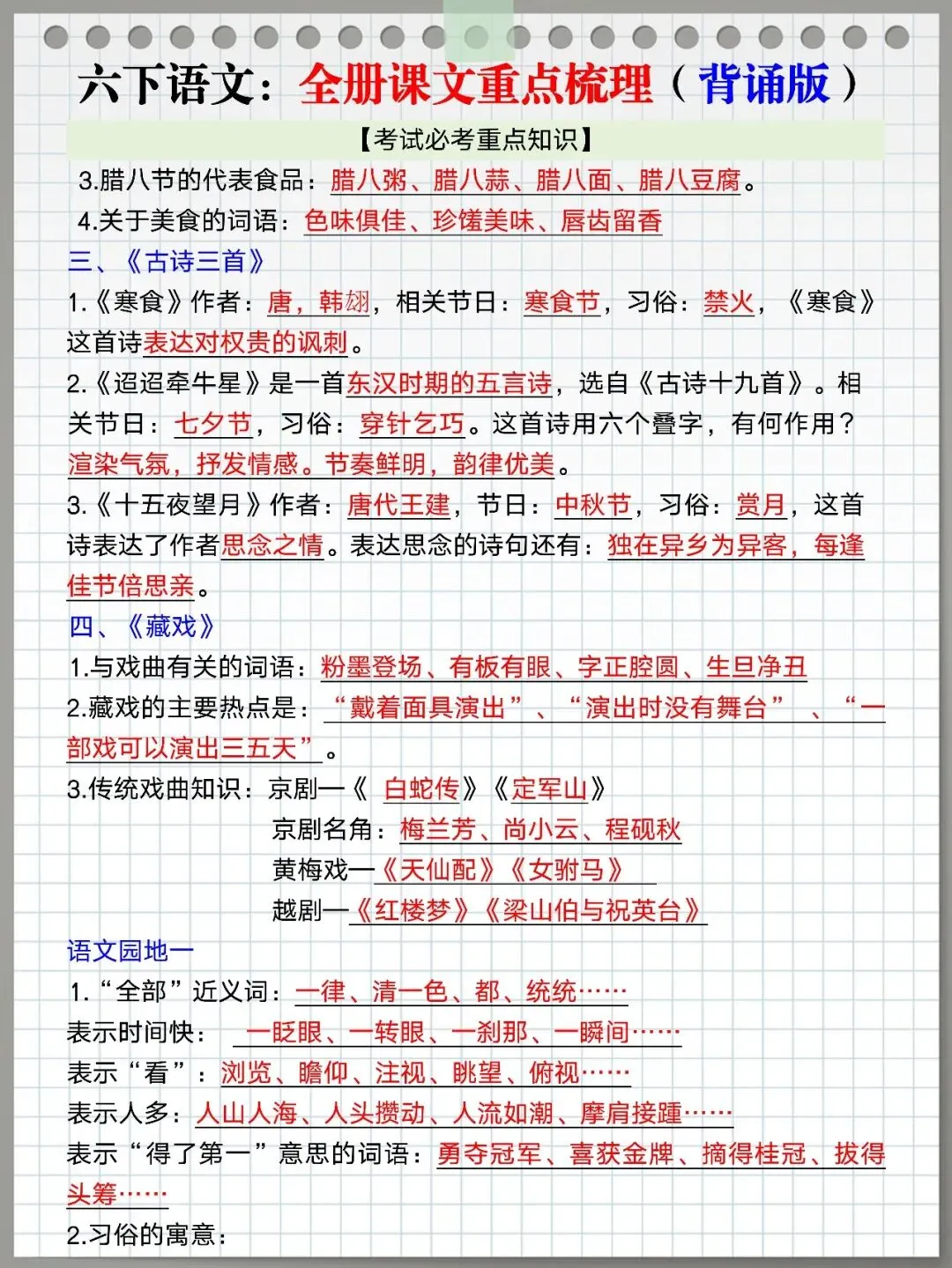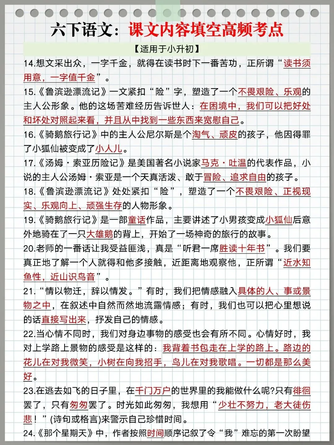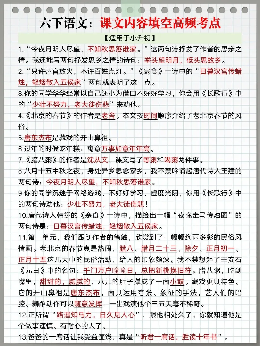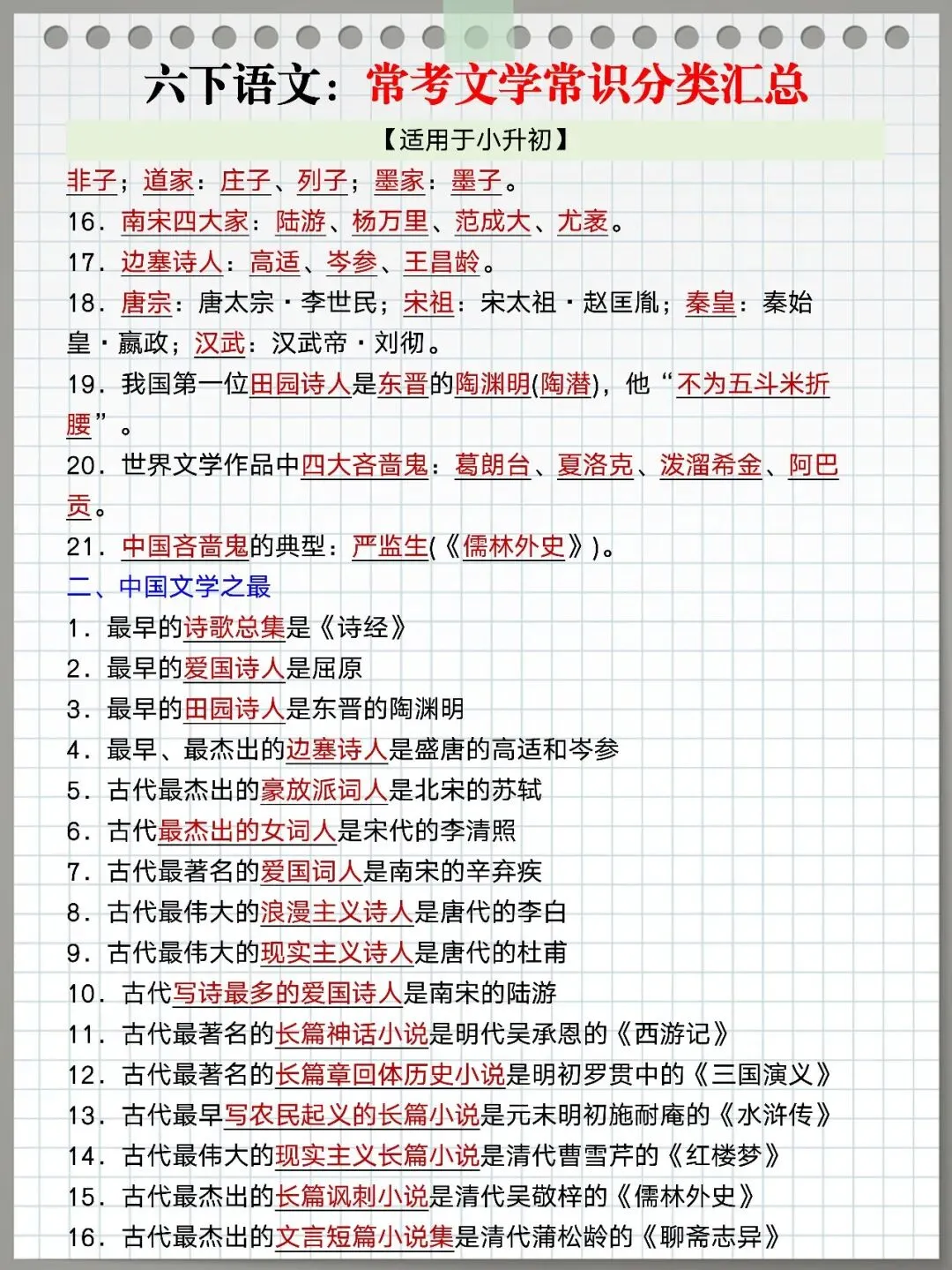 26春统编版六年级下册小升初语文知识点归纳汇总(小升初复习备考)可打印大家好,我是冯婉妈妈,今天分享的是;26春统编版六年级下册小升初语文知识点归纳汇总,关注我,每天持续分享更多的优质学习资料。 温馨提示;因篇幅有限,仅展示部分内容(文末有完整版电子版领取方式)完整电子版:①:在公众号对话框中回复:4261(不是在“留言”中发数字)