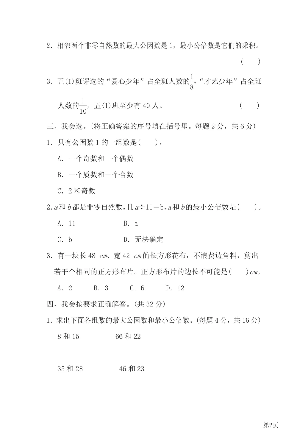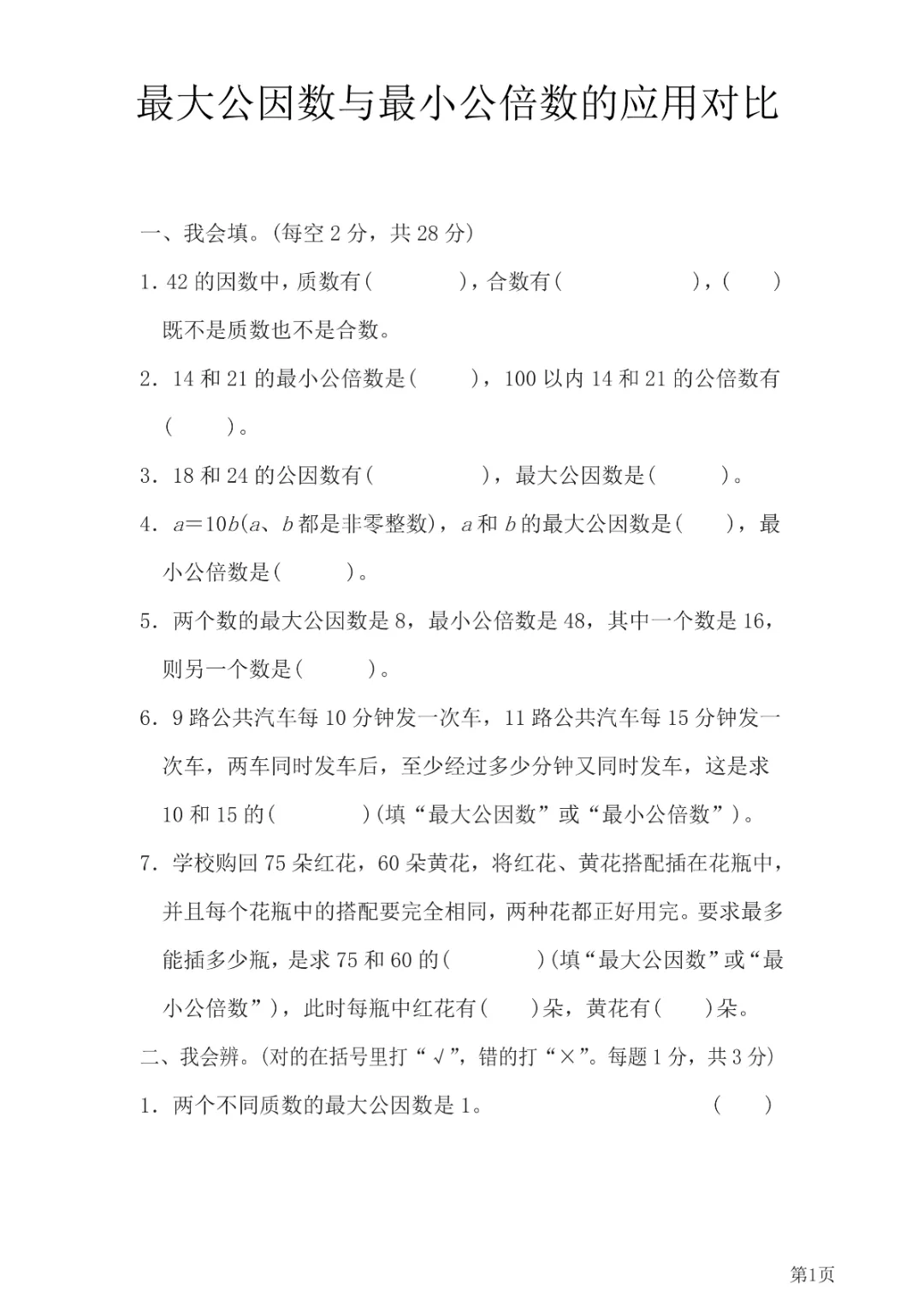 今天给大家分享的是:六年级下册数学【通用版】【最大公因数与最小公倍数的应用对比带答案】丨完整高清电子版可打印