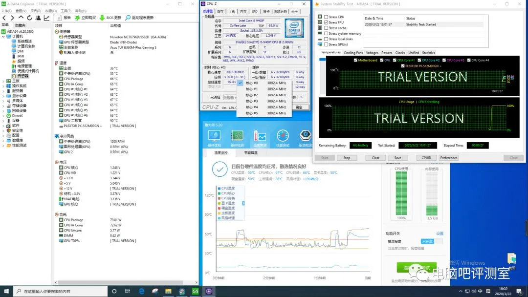 单烤FPU的情况下,处理器温度为55度。可见9400f的功耗并不高