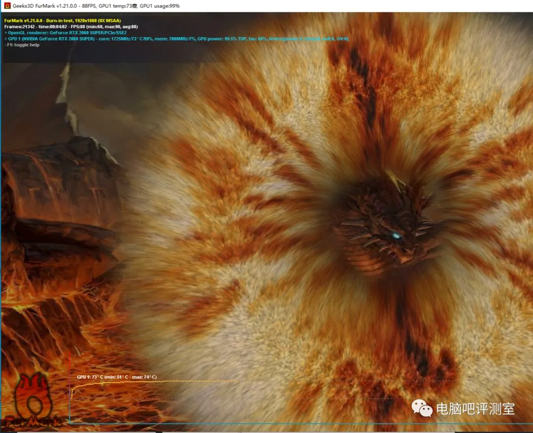 甜甜圈选择第三四项(极高负载),在室温22度的情况下最高温度只有74度,表现不错,预计在实际游戏中大概只会有60多度。