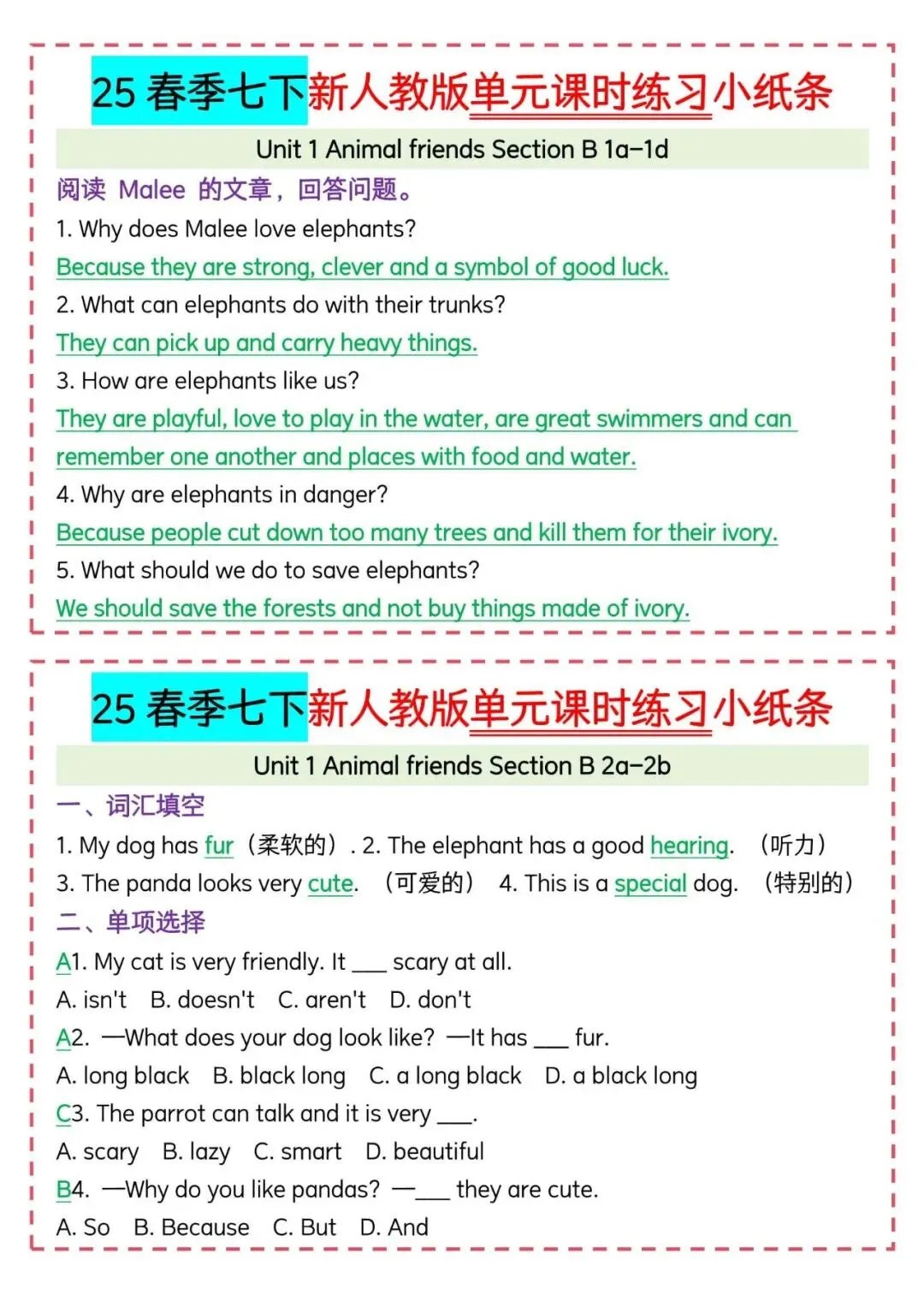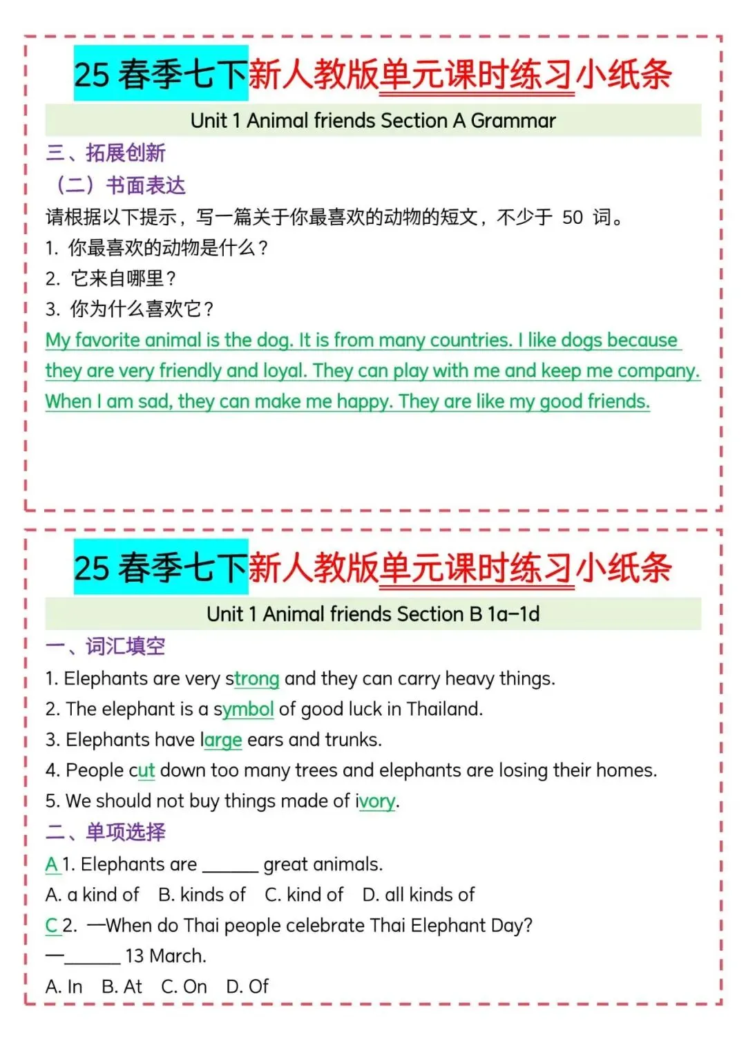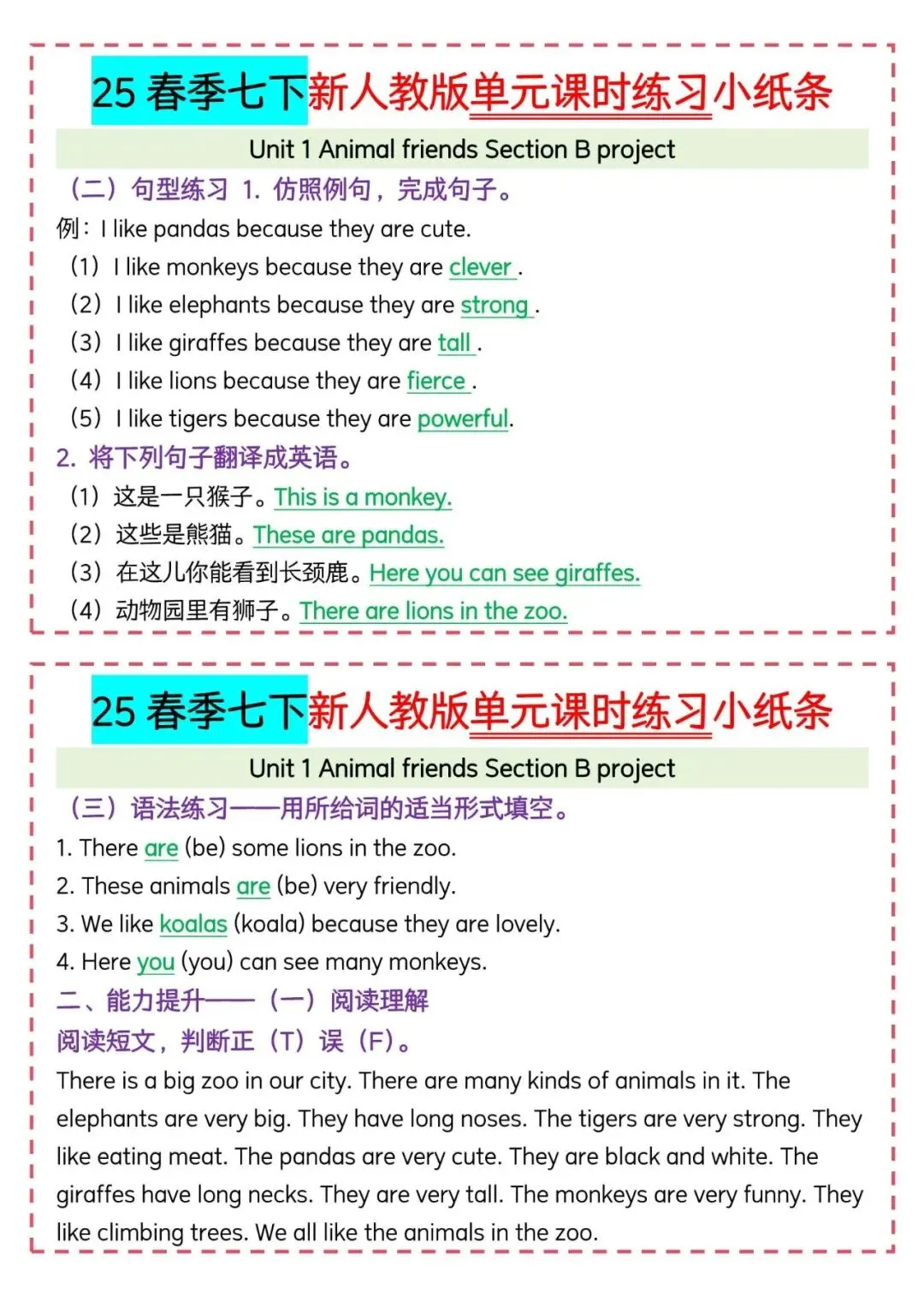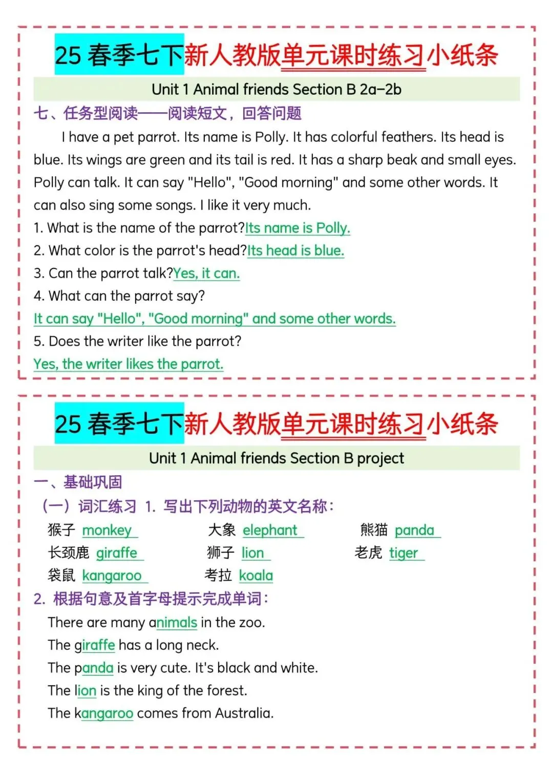 今天老师给大家整理了:新人教版七下英语|每日一练小纸条可打印,电子版可打印!