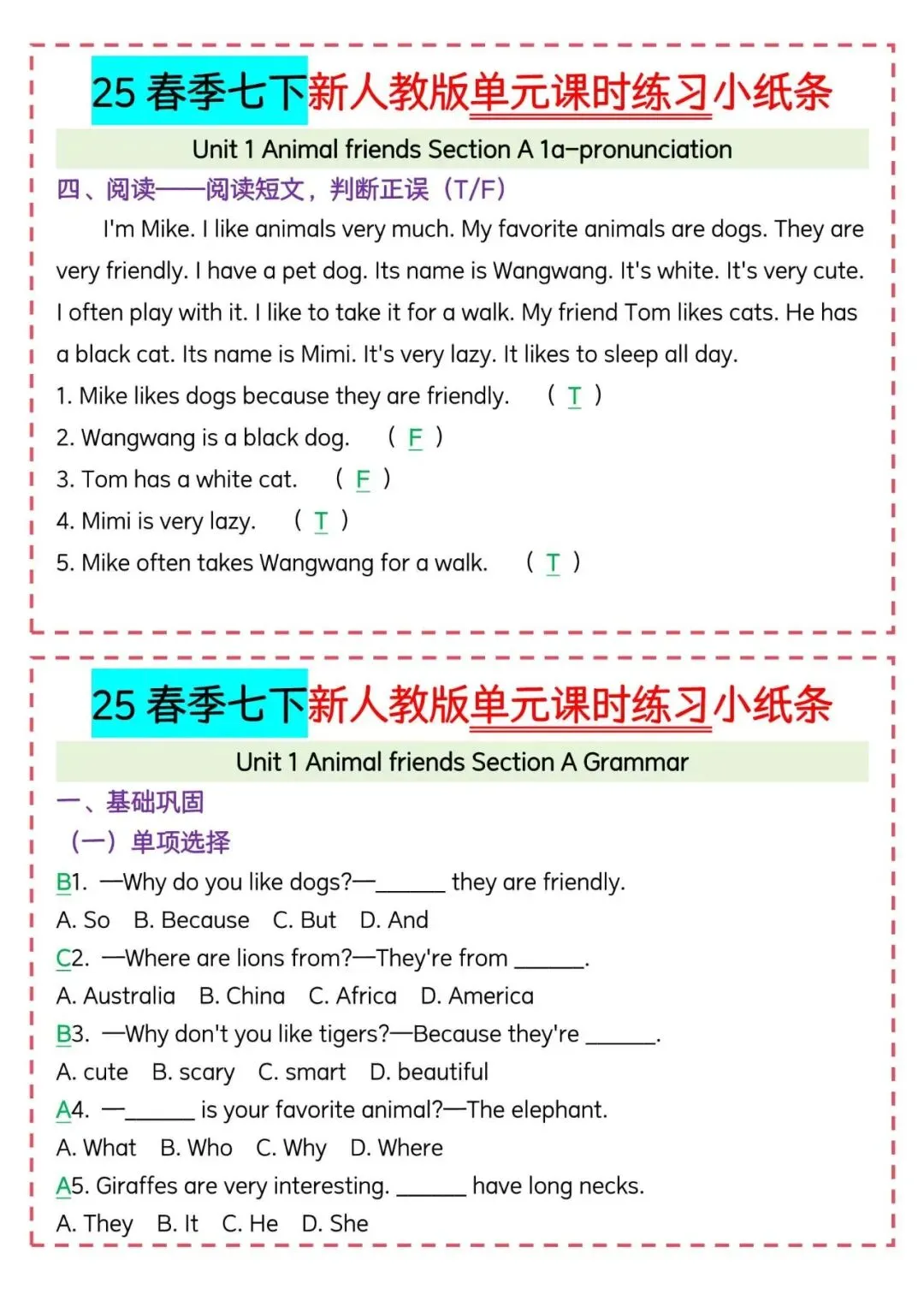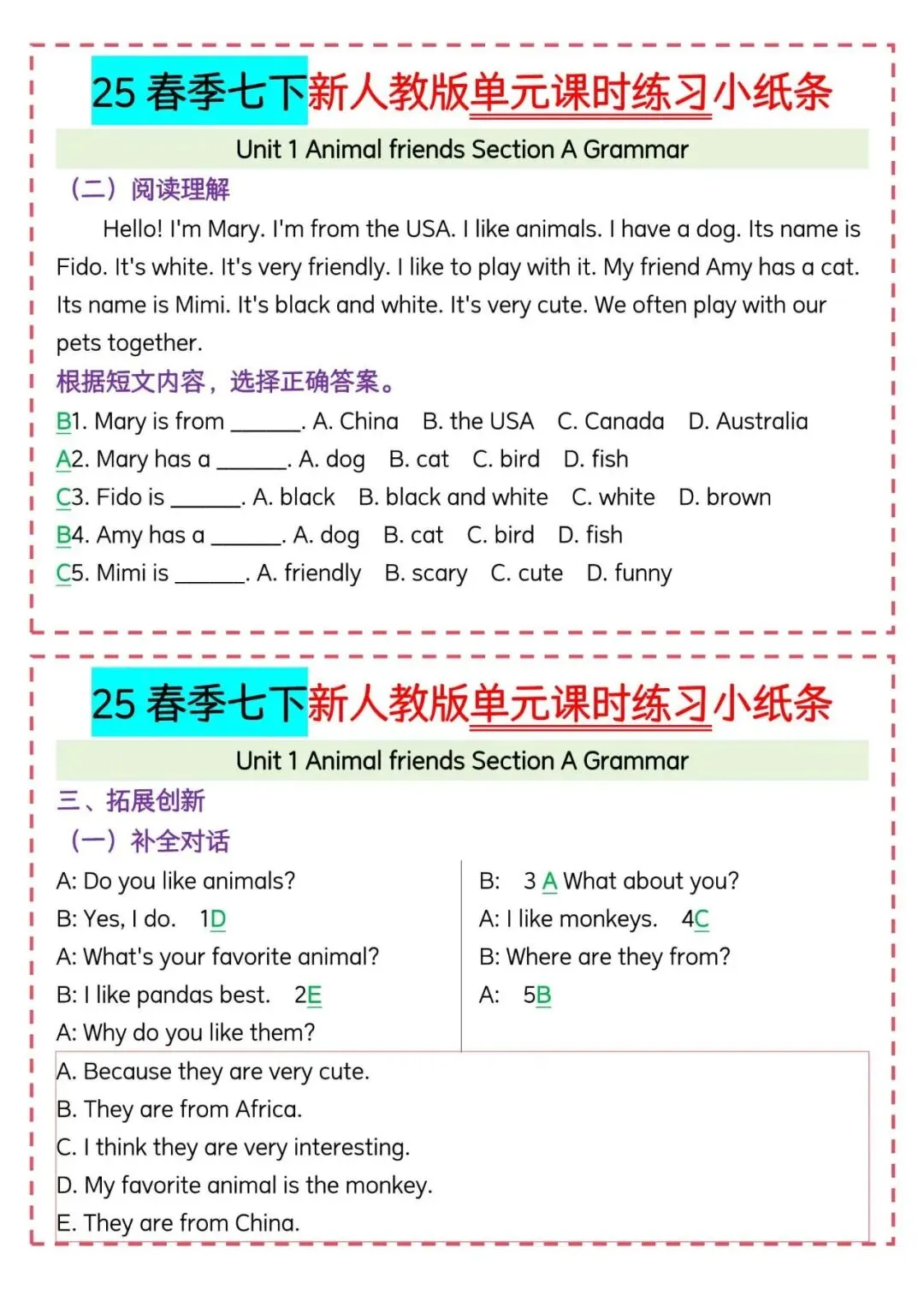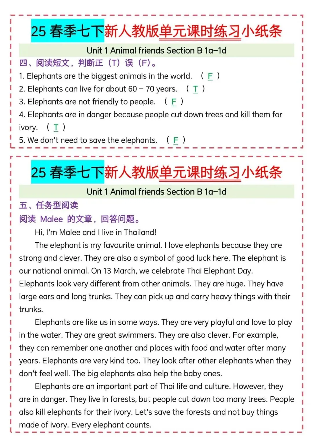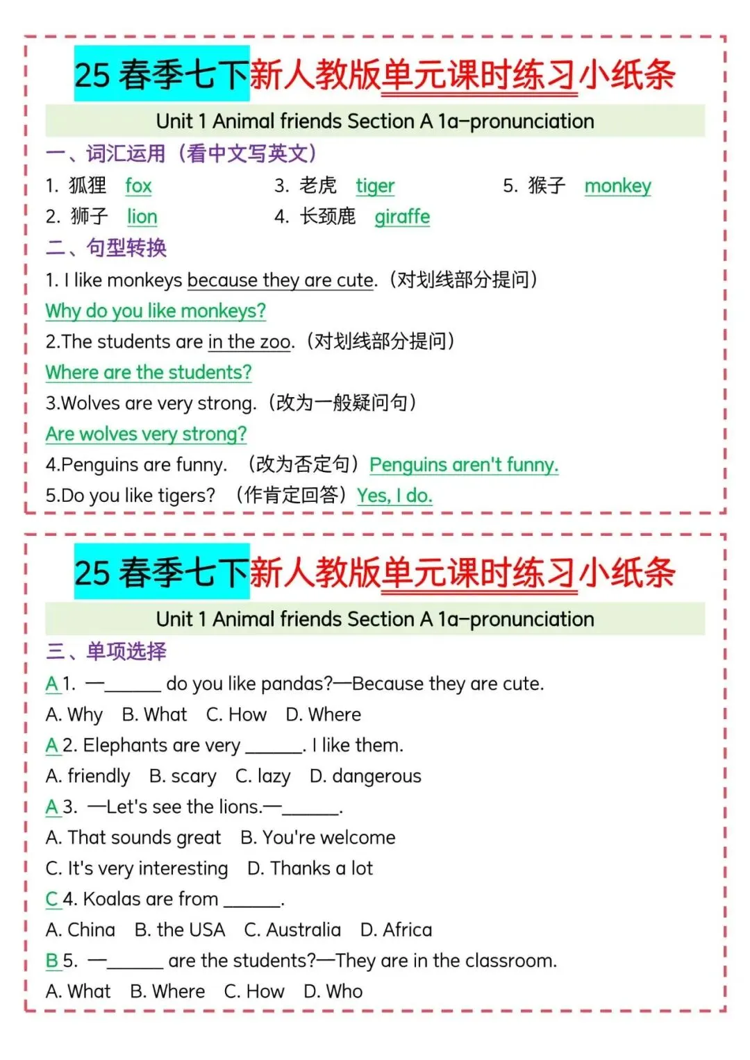 今天老师给大家整理了:新人教版七下英语|每日一练小纸条可打印,电子版可打印!