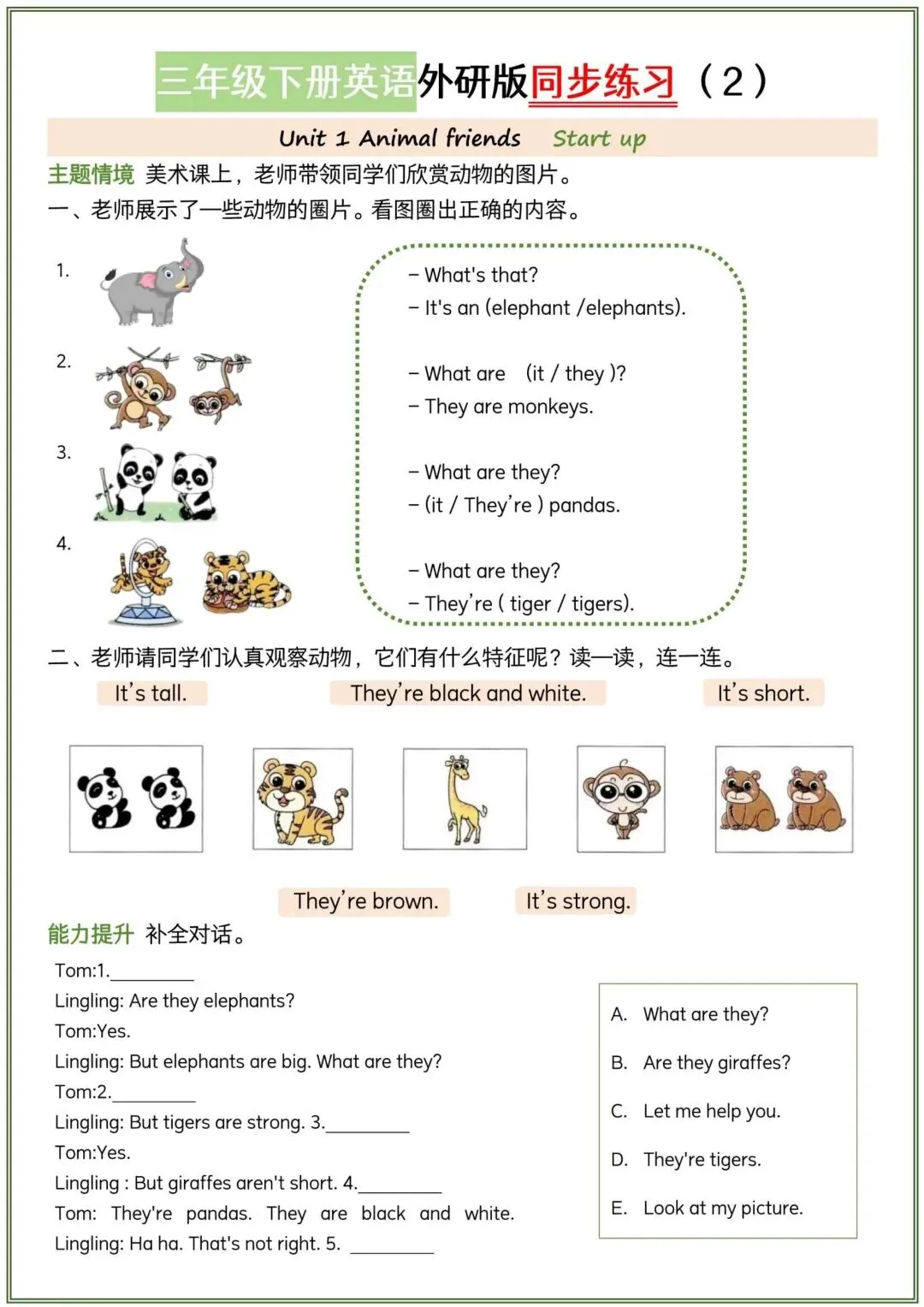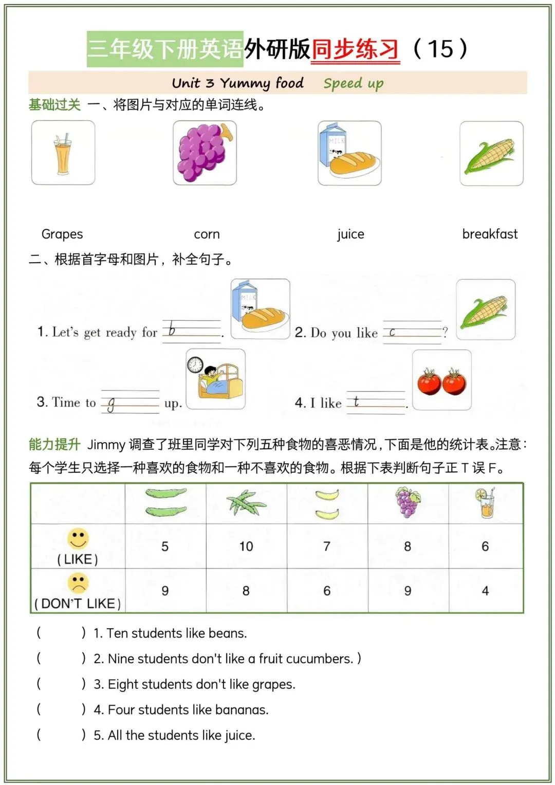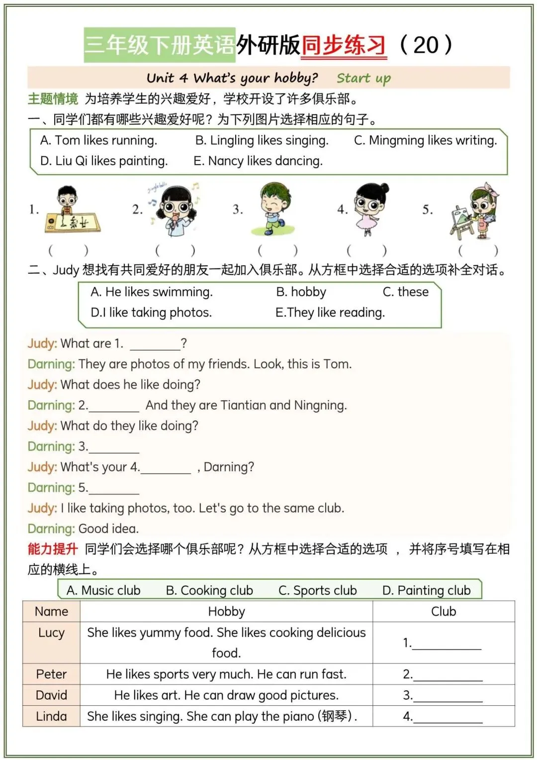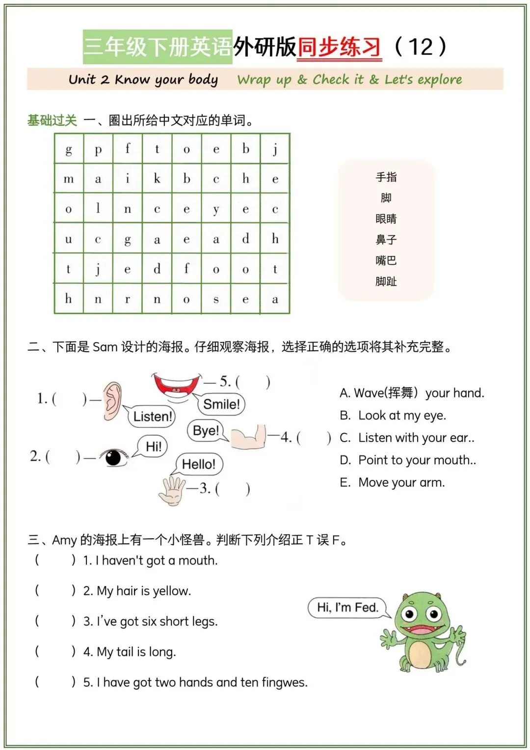 南星伴学营今日给大家分享26年春新版三年级下册英语外研版同步练习,完整版含答案,电子版可打印!有需要的家长可以保存打印啦!