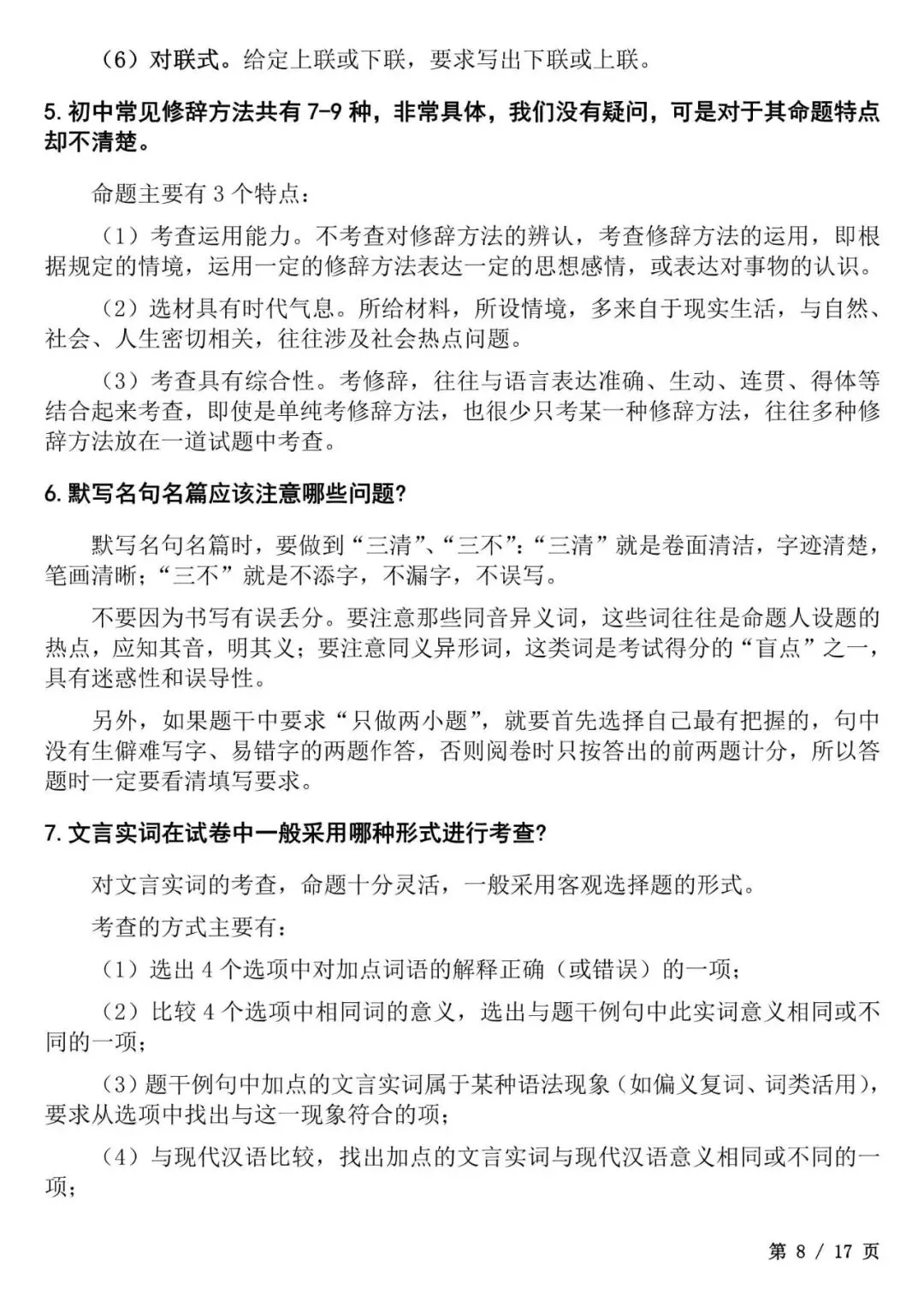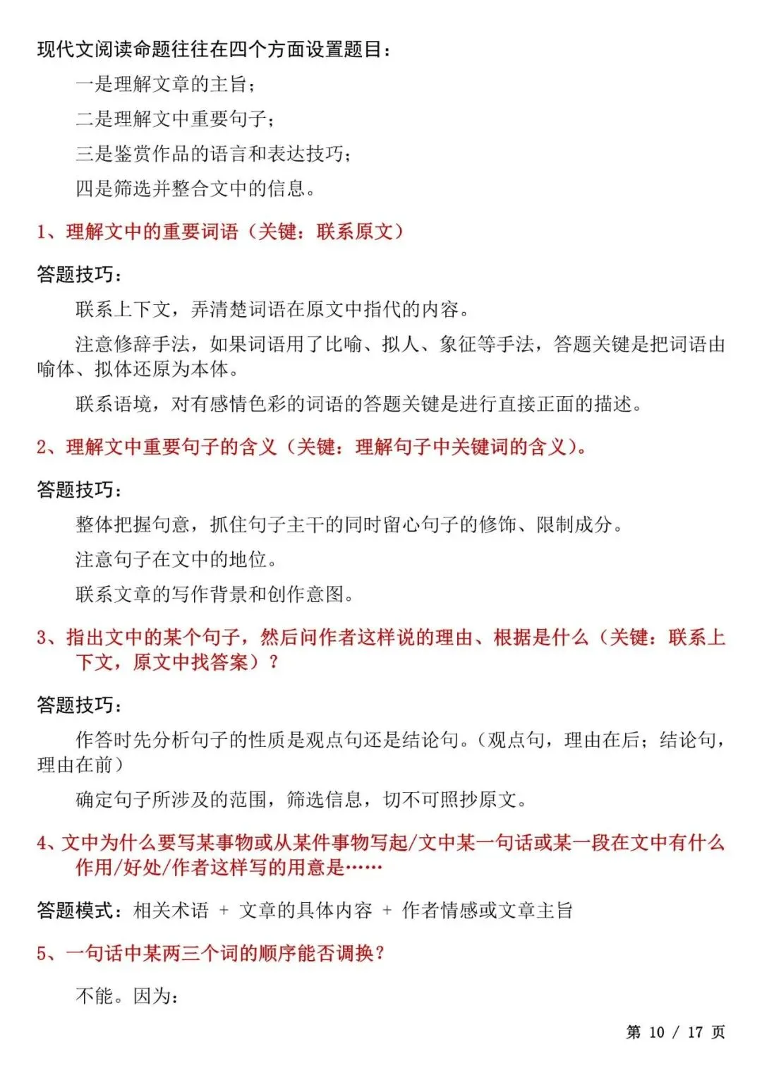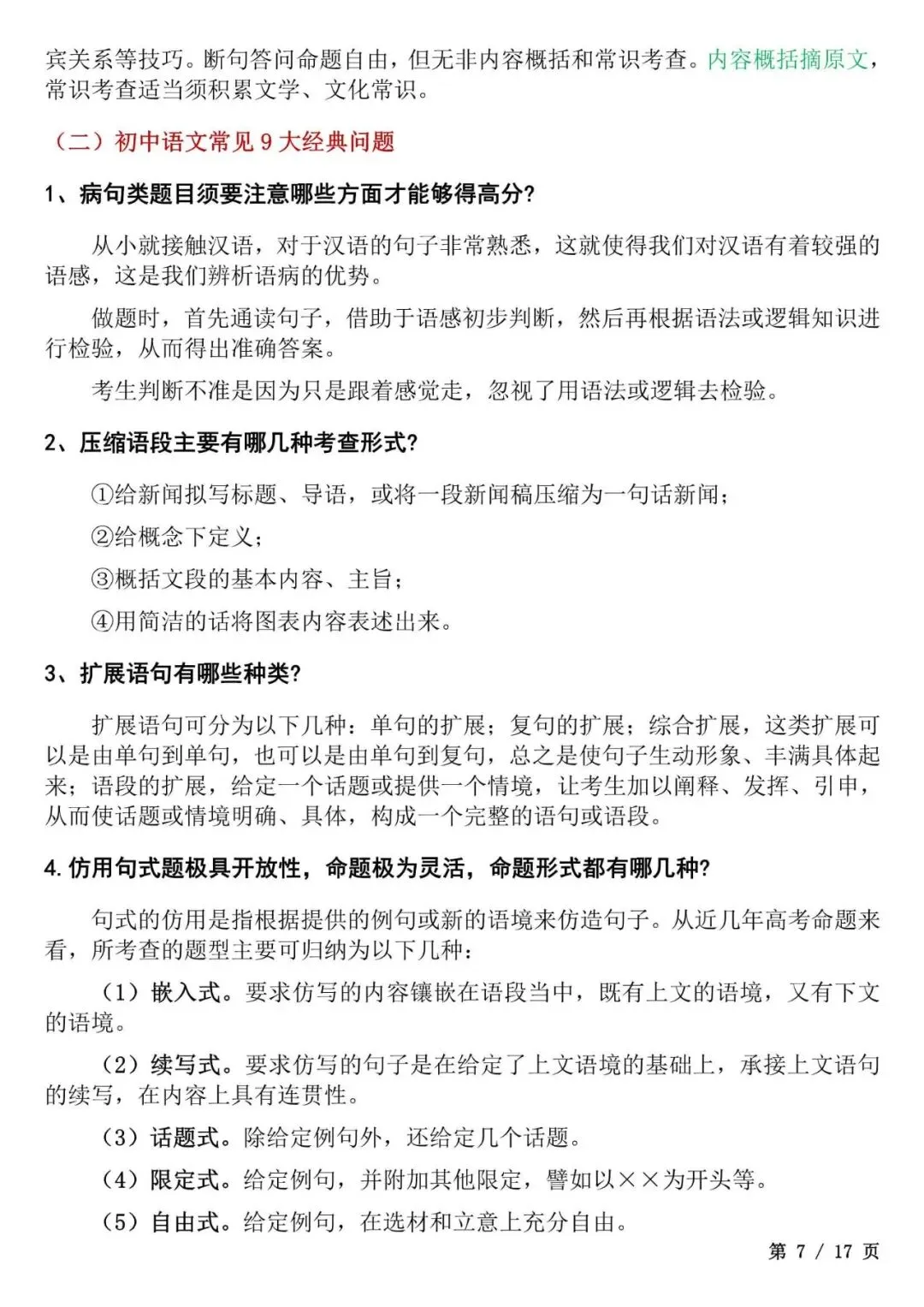 今天老师给大家整理了:初中语文答题模板大全,考试直接套用不丢分,电子版可打印!