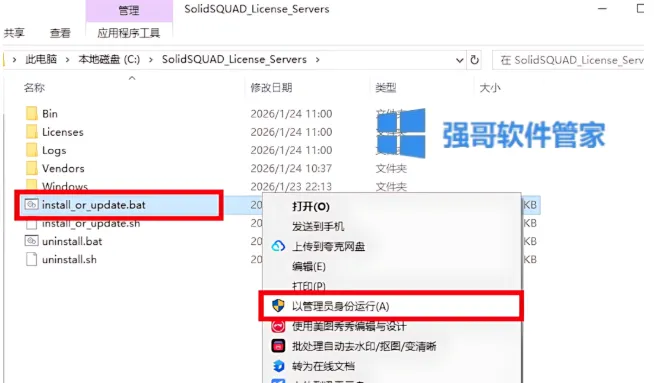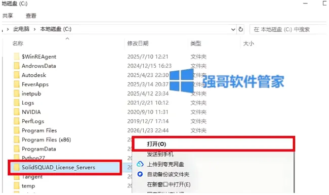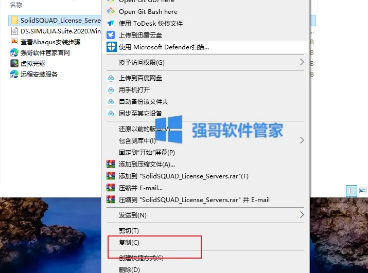 2.打开安装包,鼠标右击【SolidSQUAD_License_Servers】文件夹选择【复制】