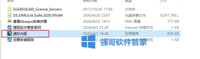 11.打开安装包解压后的【Abaqus2020(64bit)】文件夹,双击运行【虚拟光驱】。