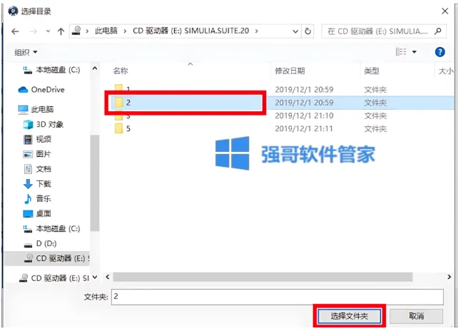 20.选择虚拟光驱加载后文件夹里的【2】,点击【选择文件夹】