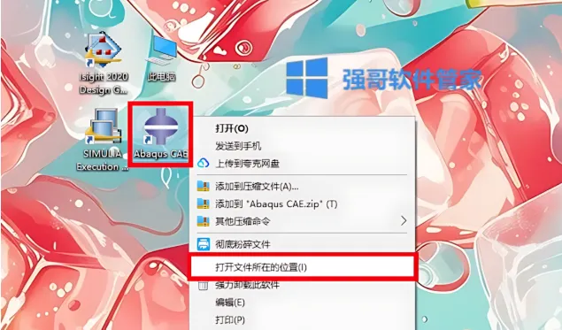 1.选中桌面【Abaqus CAE】图标选择【打开文件所在的位置】
