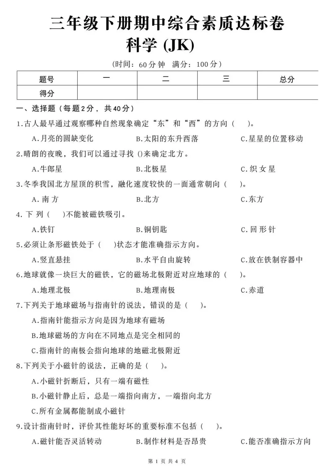 大家好,我是七宝妈,专注于1-9年级教育教学资源分享,今天给大家分享的是:专项练习|26春 小学科学 科教版《期中测试卷》3-6年级下册,PDF电子版资料可下载打印。文章末尾点击“阅读全文”可直接领取,欢迎收藏和下载。如果觉得这份资料不错,建议分享到班级群或年级群,让其他家长也打印出来,帮助孩子学习;如果觉得合适,请支持正版!