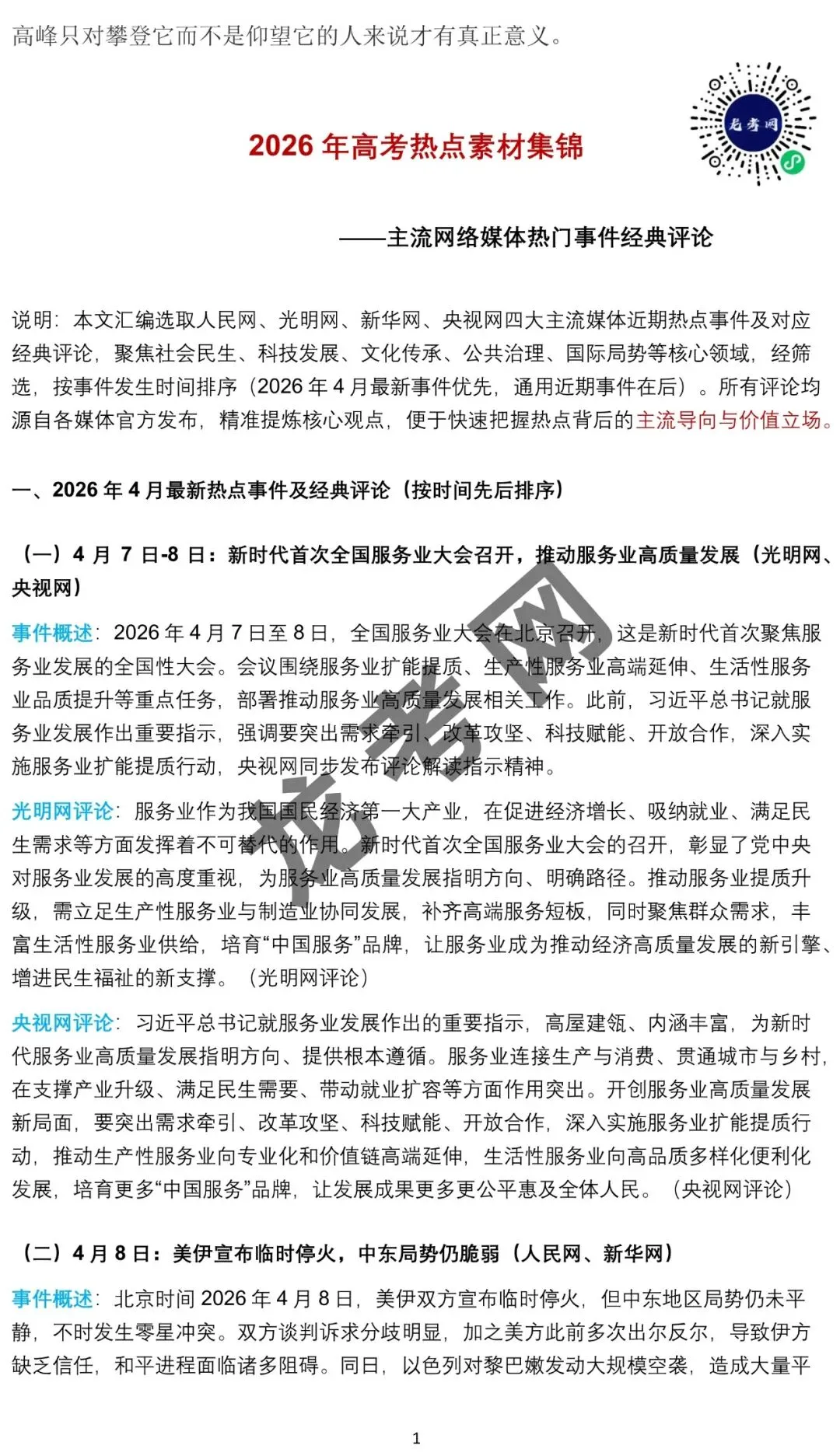 电子版下载地址 2026年高考考前备考资料下载地址 【高考语文】2026届高考作文十大原创预测押题 【高考语文】满分作文万能模板 【高考语文】2026年高考语文阅读题型突破-诗歌鉴赏 【高考数学】解答题77分三轮冲刺保分强化训练(含解析) 【高考数学】2026年高考数学小题标准练 【高考数学】冲刺高分突破大题压轴(精选40题)(含解析) 【高考英语】阅读理解C篇D篇实验研究类核心障碍词 【高考英语】读后续写最新话题(6大核心类+完整前文素材) 【高考英语】2026年高考英语临考必记词汇及必练题 【高考化学】2026年高考化学选择题专项突破 【高考化学】主观大题突破:化学实验综合 【高考生物】2026年高考生物总复习核心考点通关8天必背