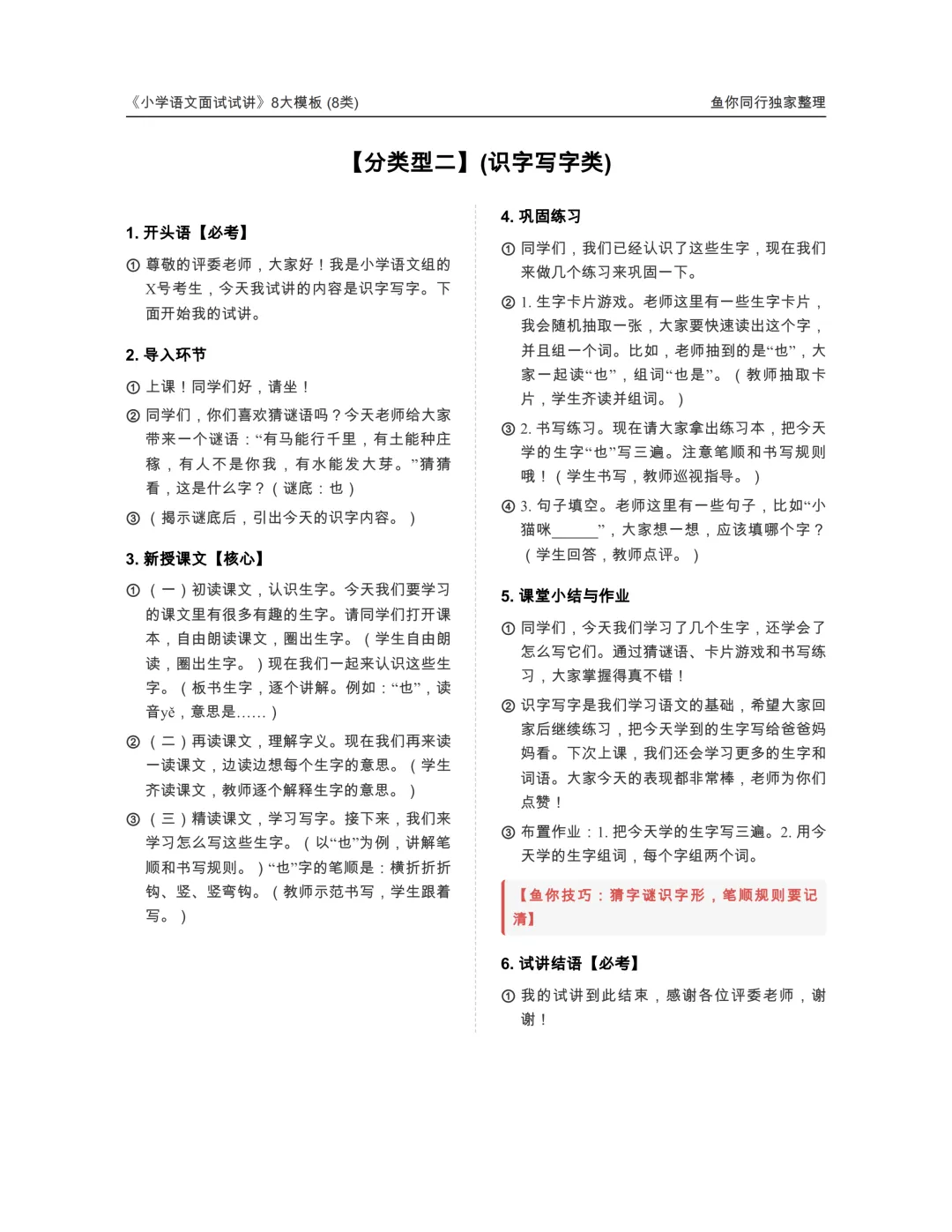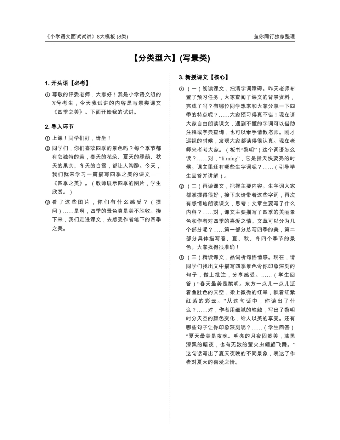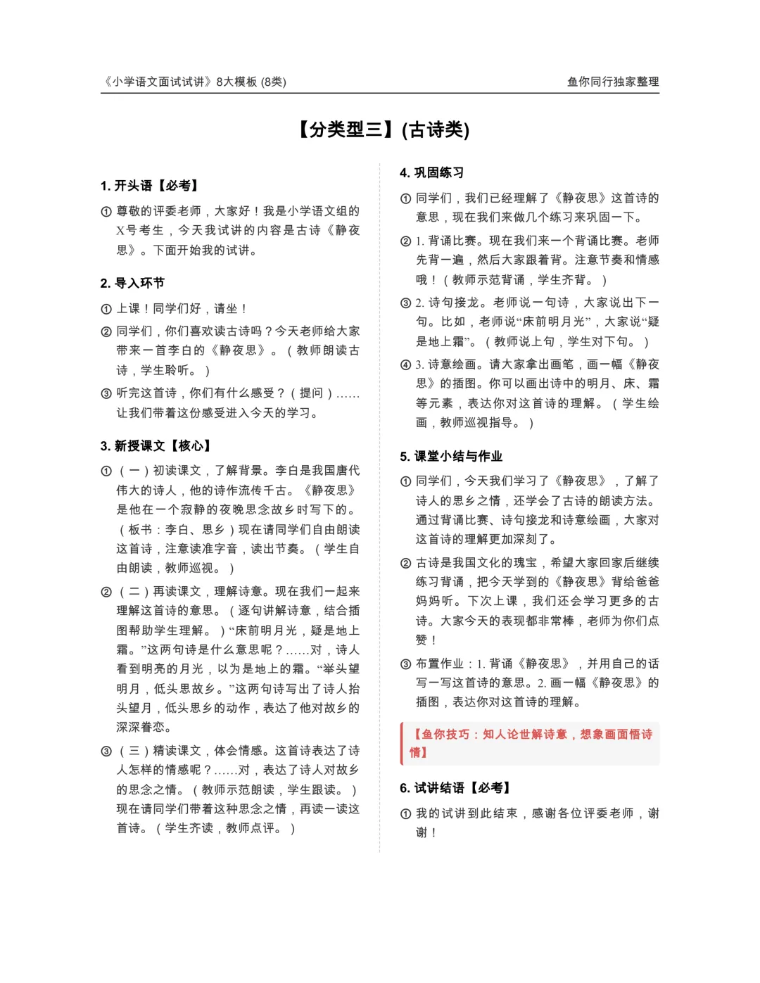 好背哭,26上小学语文教资面试8大试讲模板
