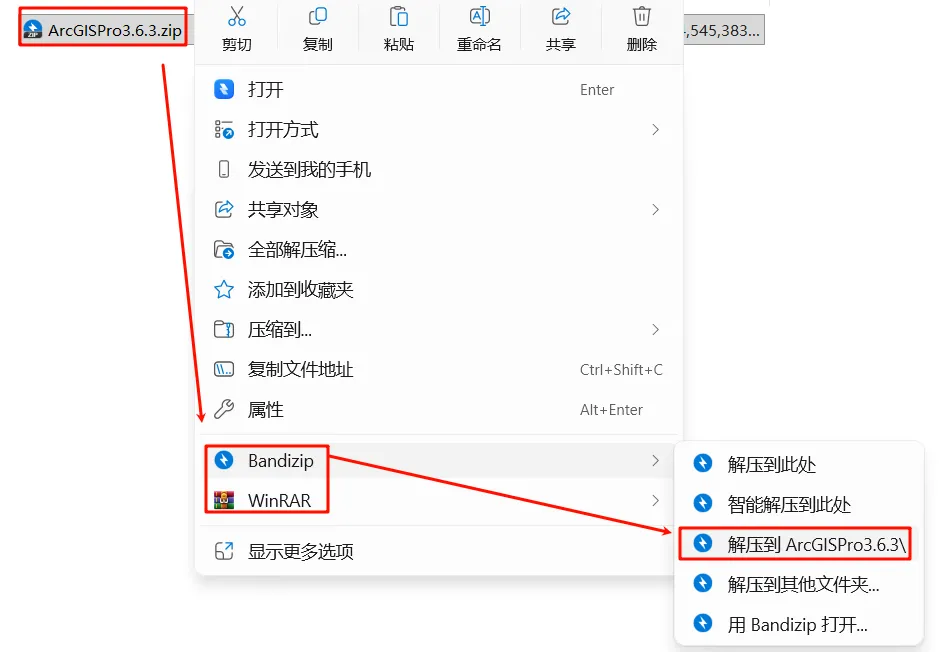 1.选中下载好的安装包,鼠标右键解压到"ArcGISPro3.6.3"文件夹