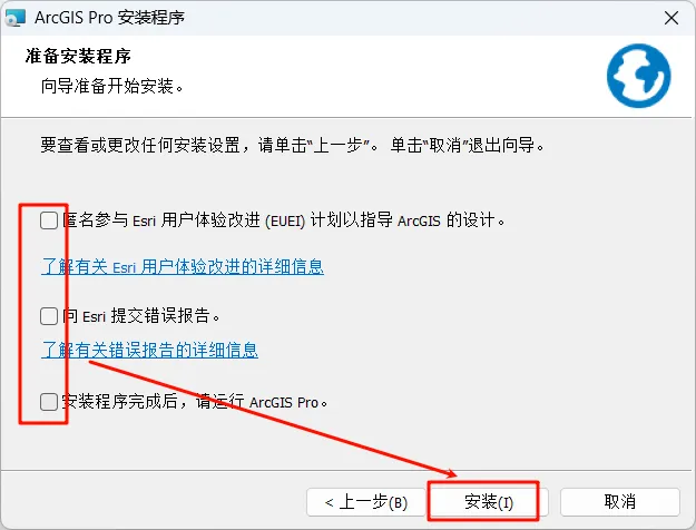 9.取消勾选,点击“安装”