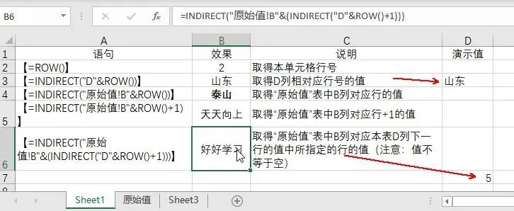 示例 1:INDIRECT("Sheet1!B" & ROW()) → 动态拼接行号。
