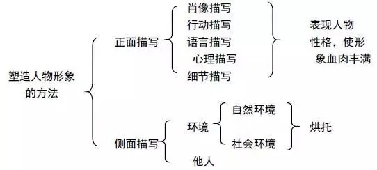 ⑴描写方法:正面描写(肖像、行动、语言、心理、细节),侧面描写(环境、他人……)