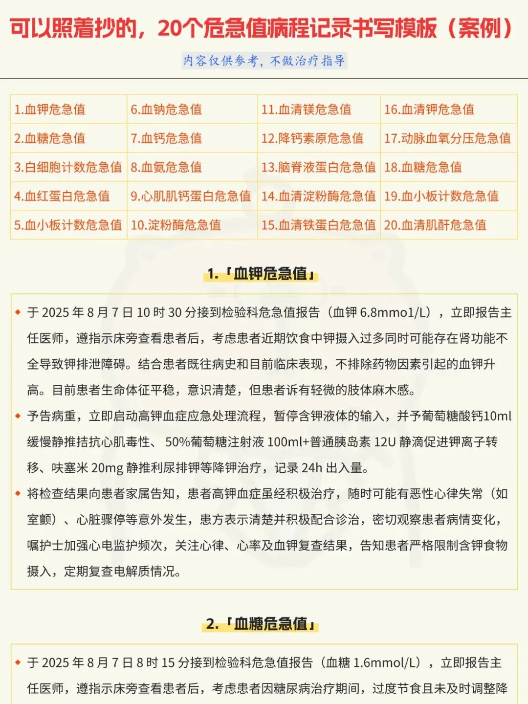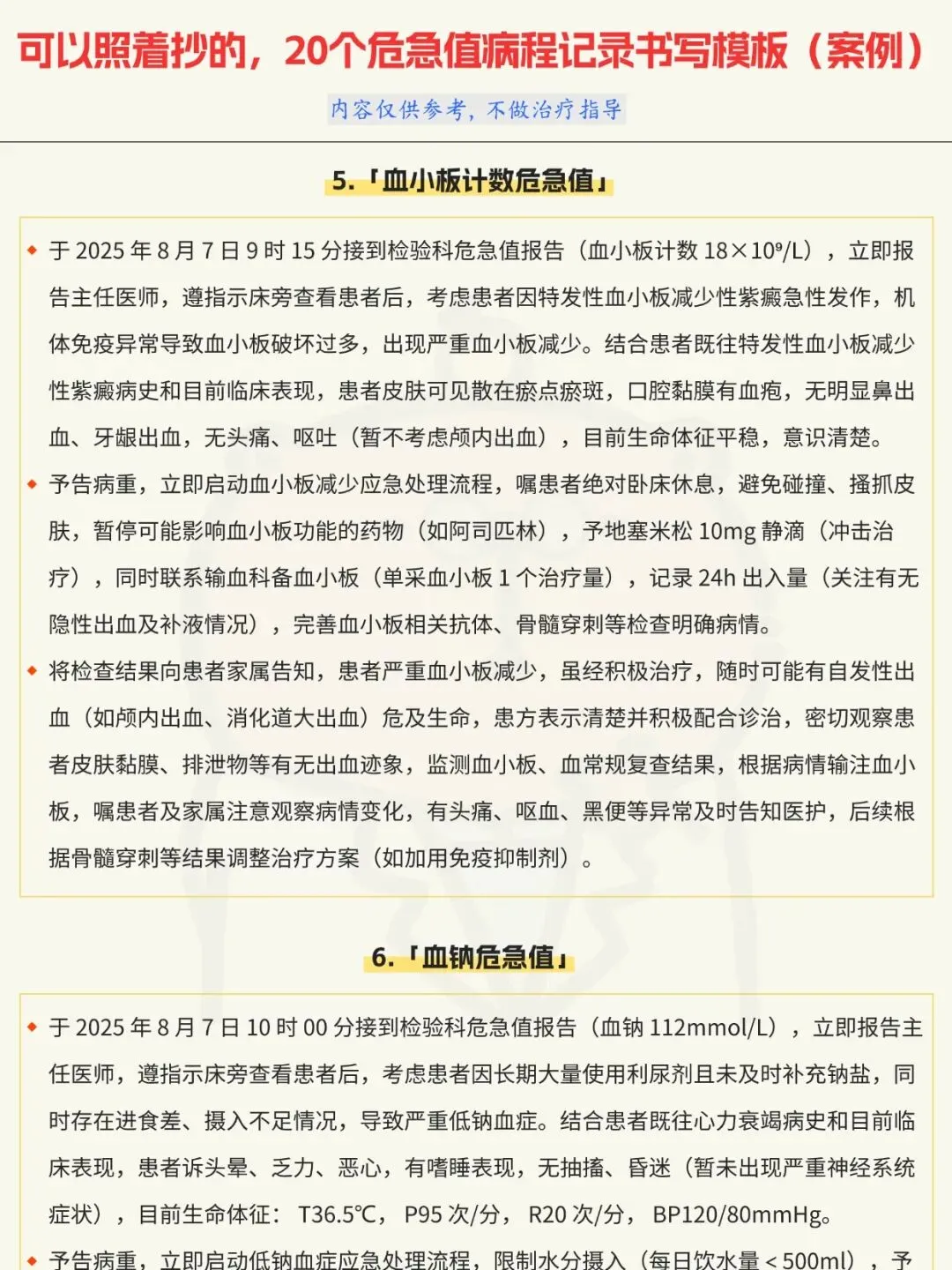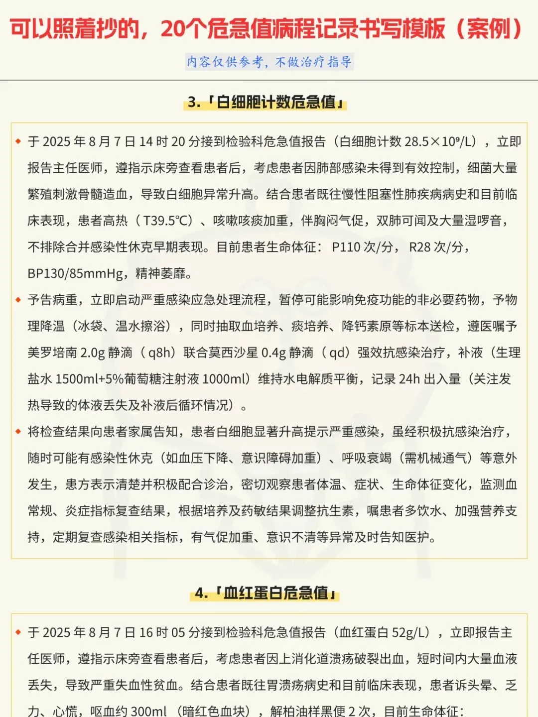 可以照着抄的,20个危急值病程记录书写模板(案例)