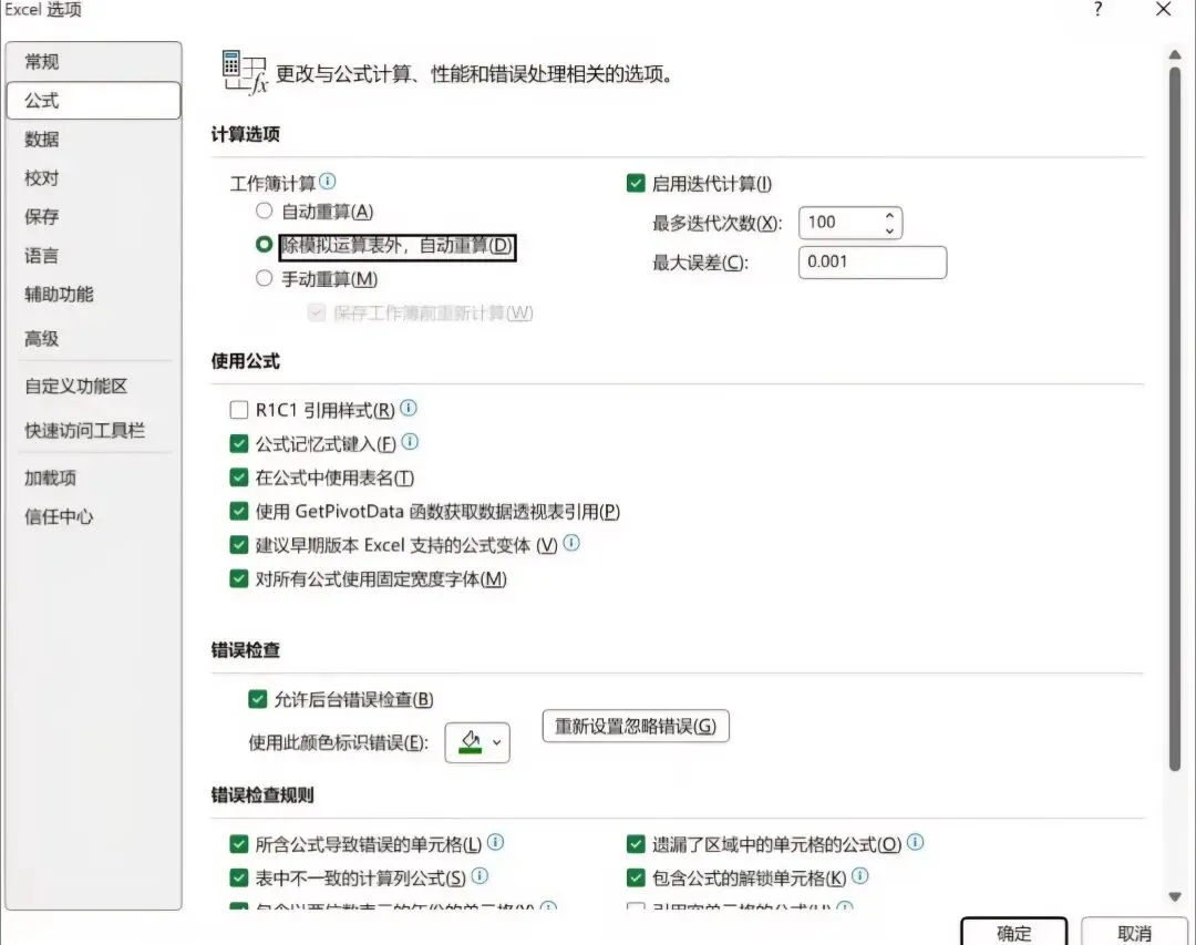 ▶️ 建议设置:公式→计算选项→「除模拟运算表外,自动重算」,保持普通公式实时更新,模拟运算表手动刷新。