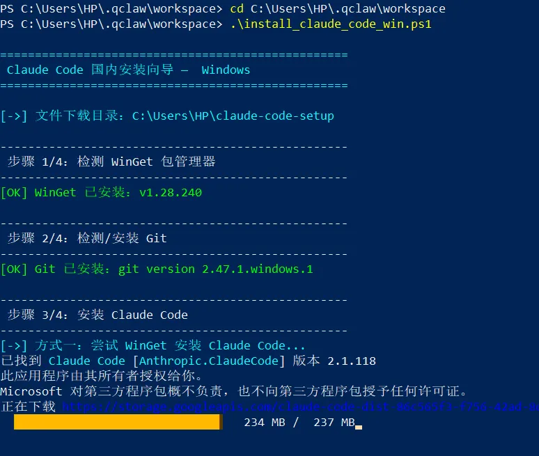 Windows双击start_install.bat 回车之后,脚本就开始跑了
