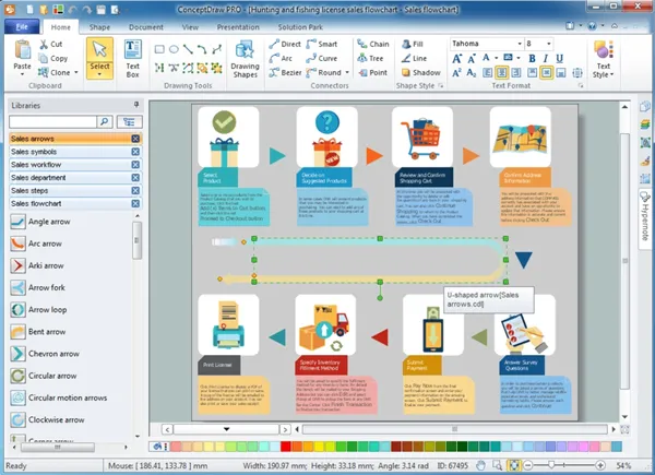 软件配备全套专业绘图工具,支持自定义模板制作与复杂图表排版,依托RapidDraw、Smart Connectors等功能,大幅提速流程图、UML图、BPMN图表的绘制效率。同时自带演示与动态图表能力,可快速制作商业演示文稿,联动外部数据源生成动态画面,直观展示业务数据与核心指标,高效强化职场沟通与内容展示效果。