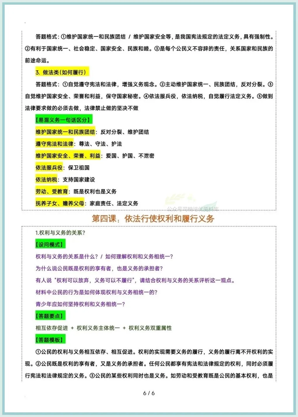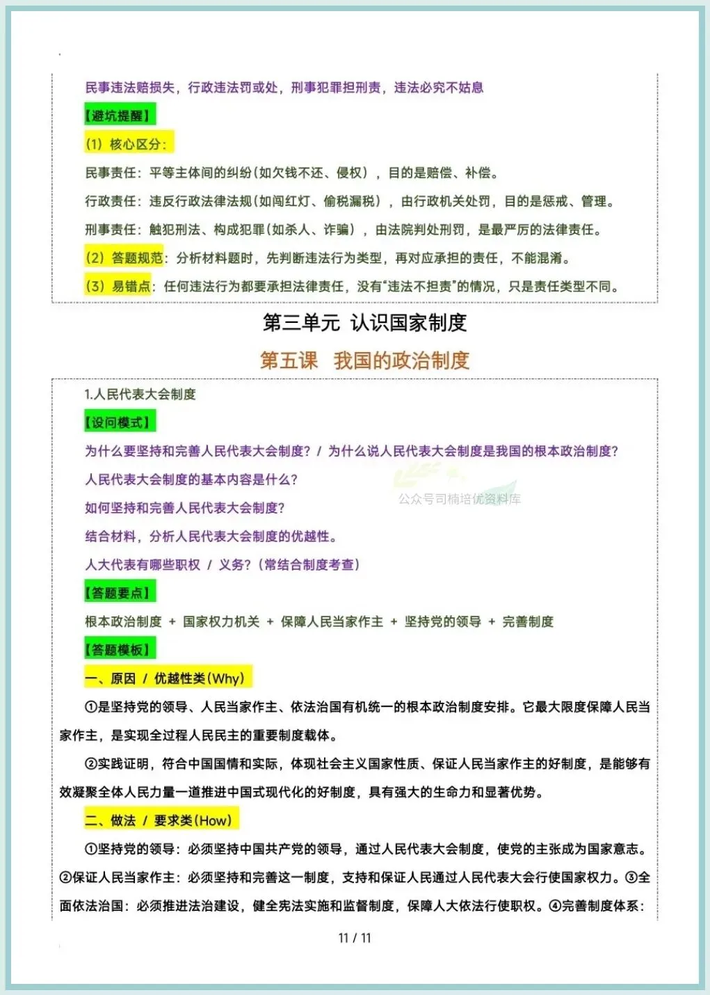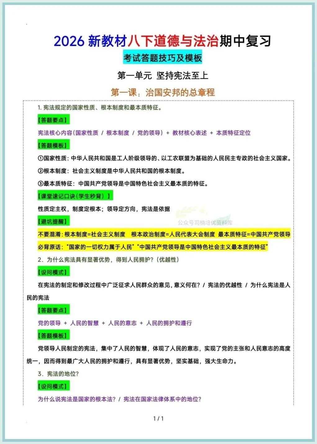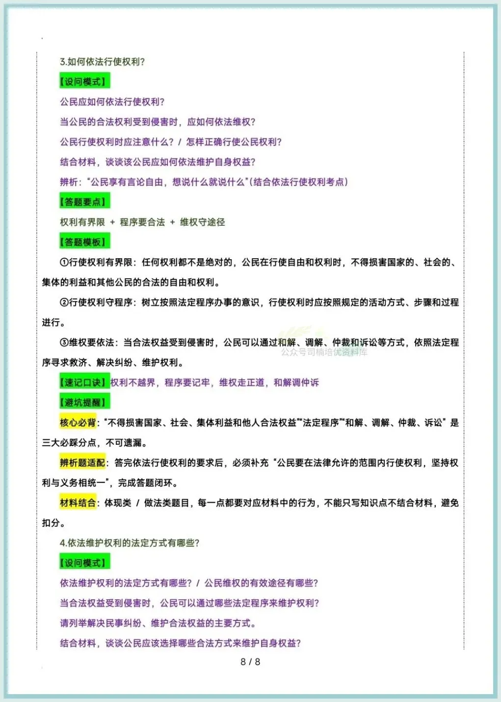 今日分享:2026八下道法期中复习答题技巧及模版汇总,推荐老师和家长们收藏打印让孩子练习,助力孩子提高成绩!