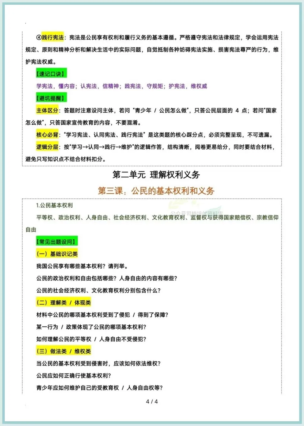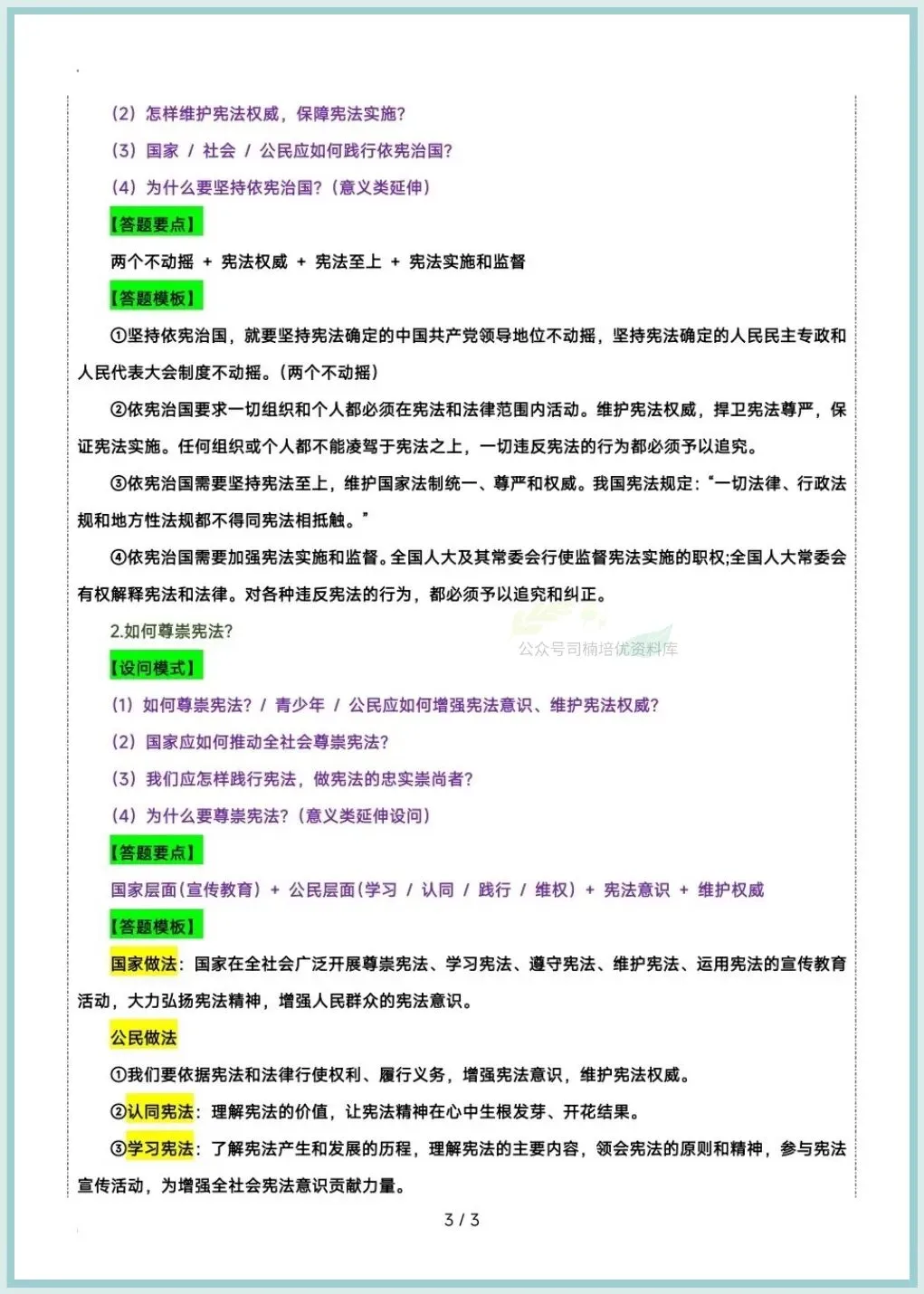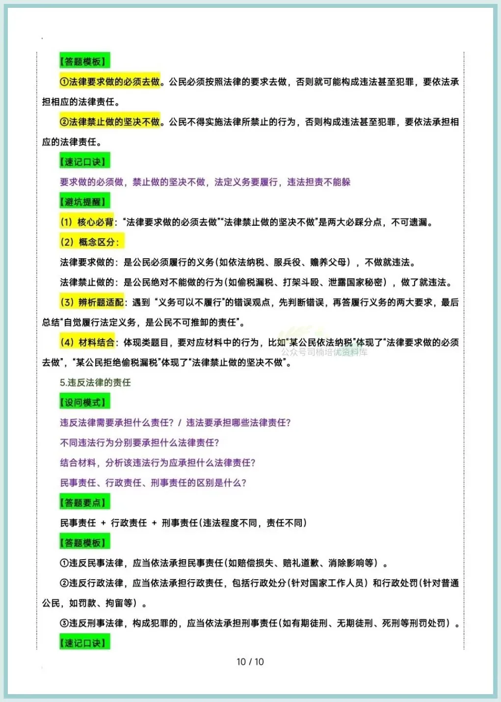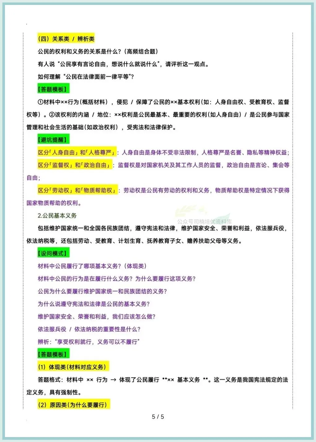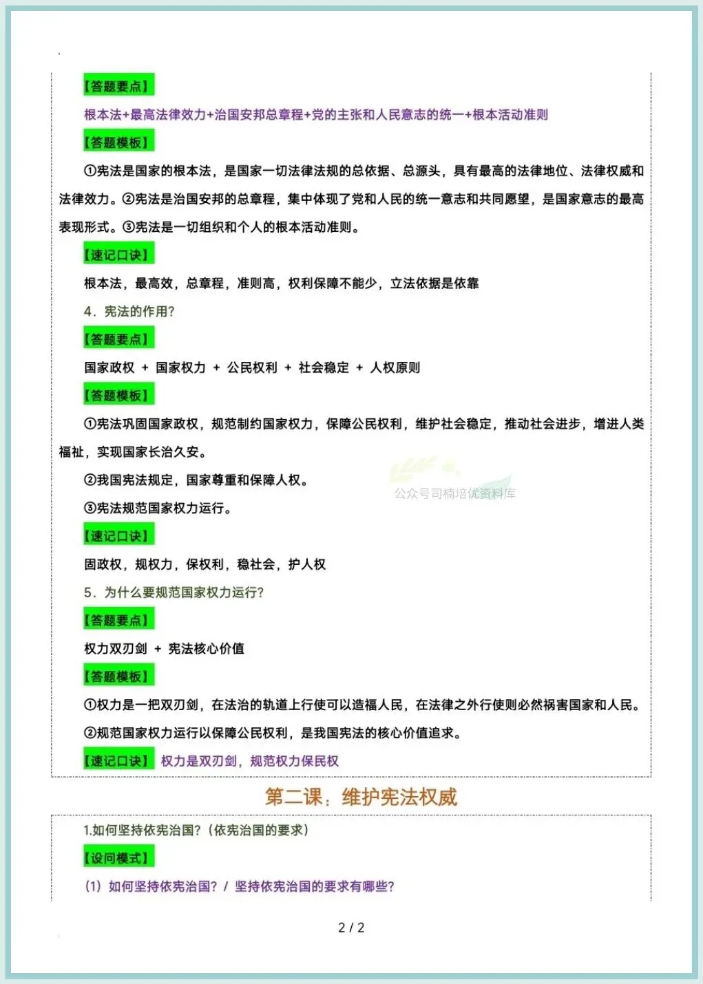 今日分享:2026八下道法期中复习答题技巧及模版汇总,推荐老师和家长们收藏打印让孩子练习,助力孩子提高成绩!