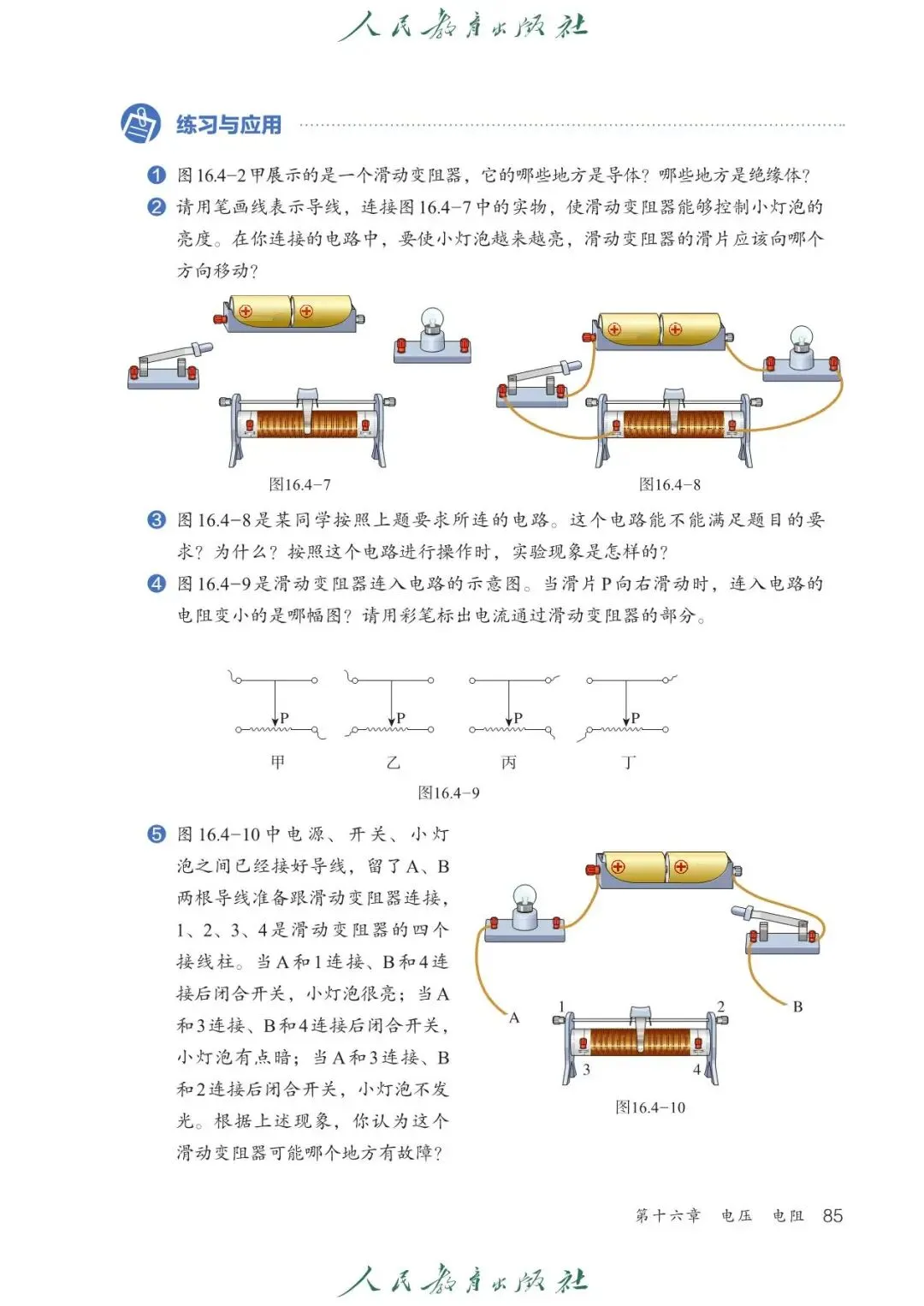 5、用滑动变阻器控制电阻两端的电压:串联电路有分压作用,在串联电路中,某个电阻的阻值增大,则这个电阻分压也增大。