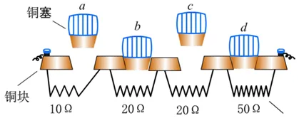 ②读数方法:如图所示,是插入式电阻箱的示意图,插入b、d铜塞,接入电路的总电阻R=10Ω+20Ω=30Ω。