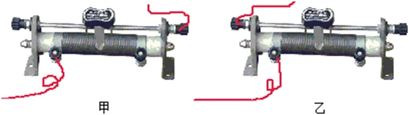 (1)断路式接法:如图甲,滑片右边的电阳丝被断路,左侧电阻丝接入电路。