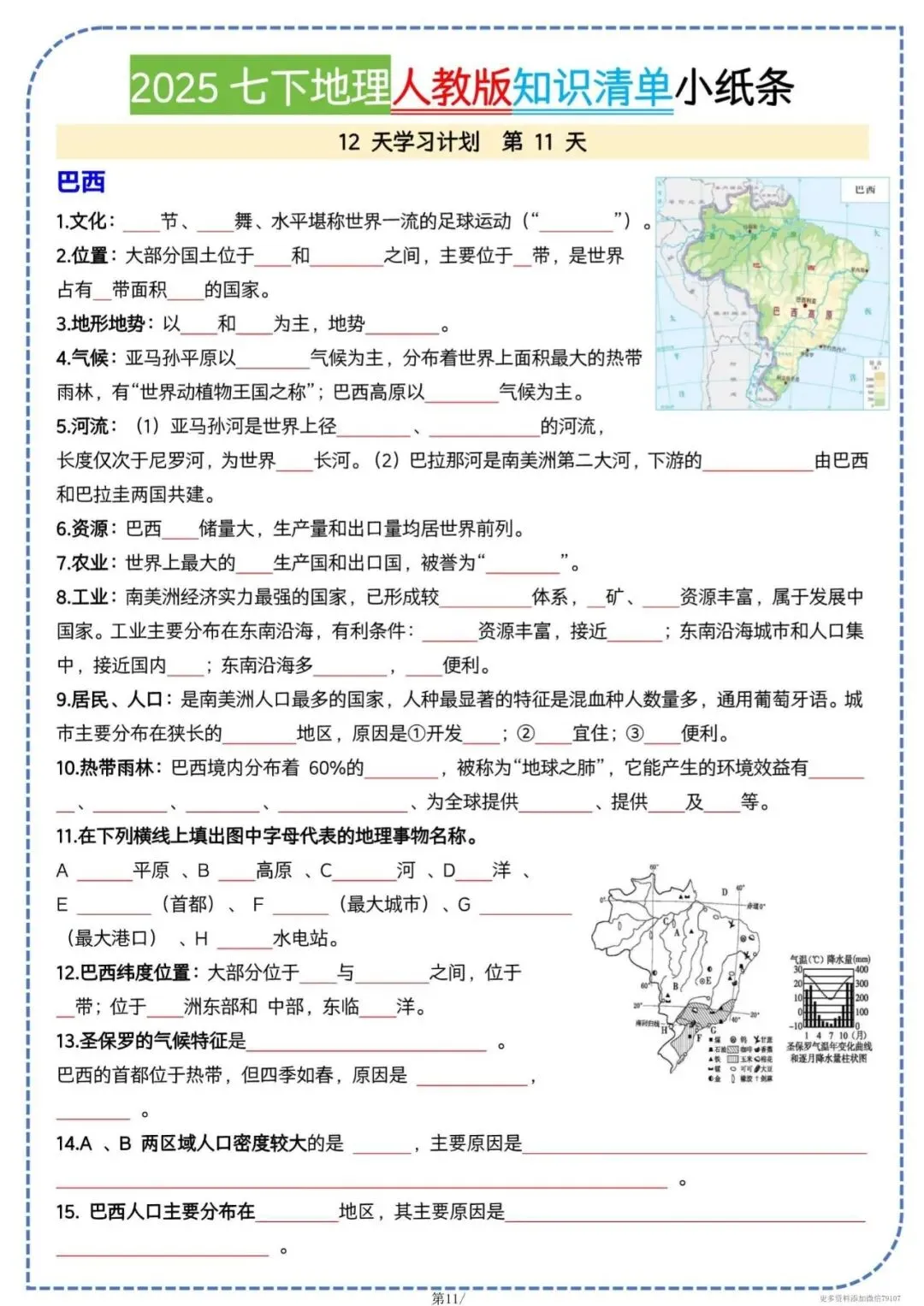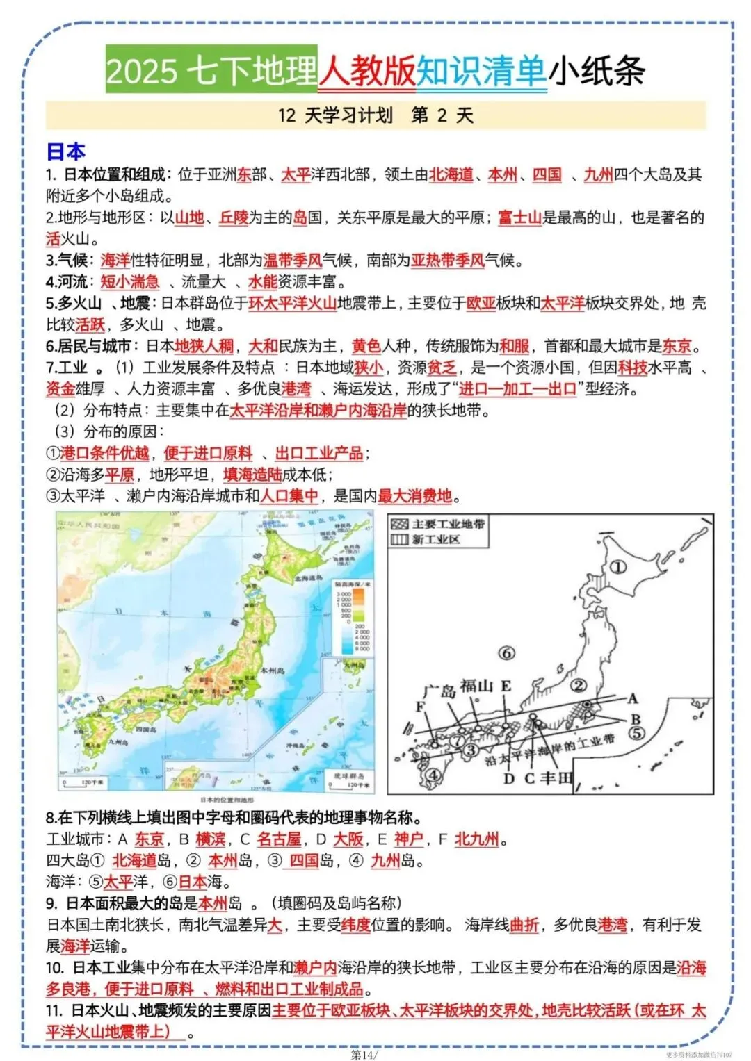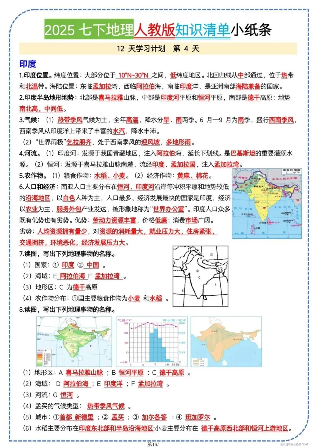 今天老师给大家整理了:七下地理知识清单|全册考点一页背完,电子版可打印!