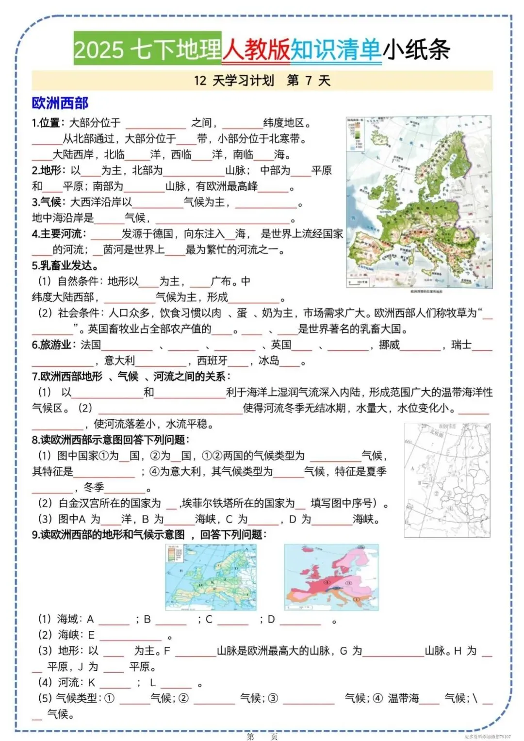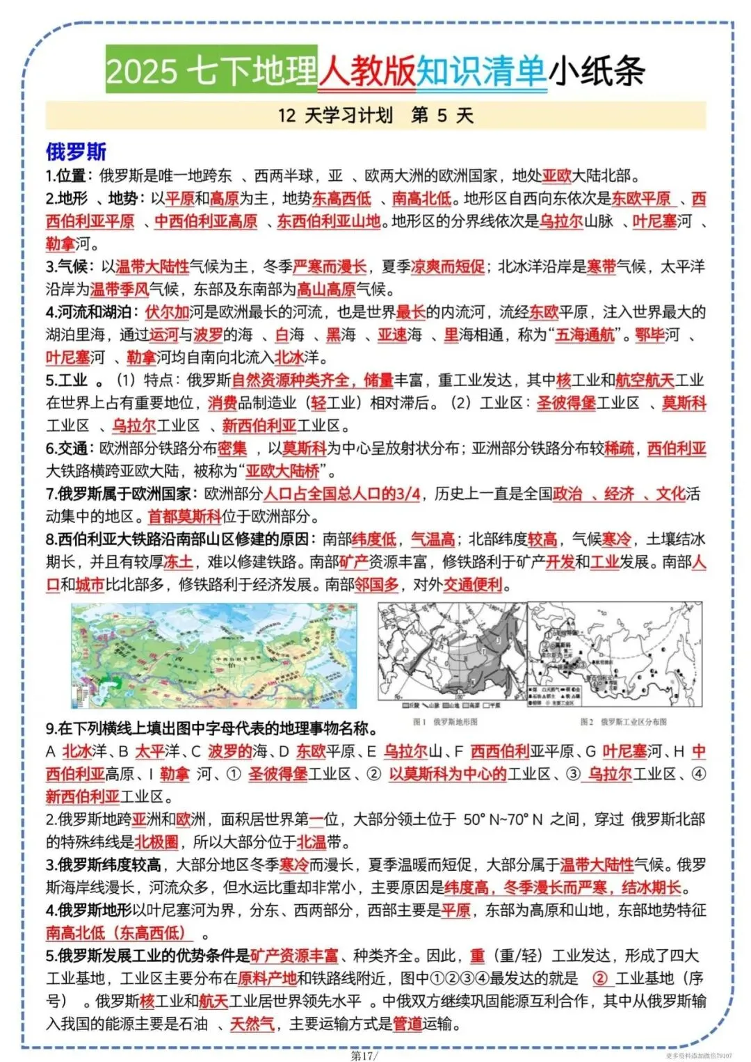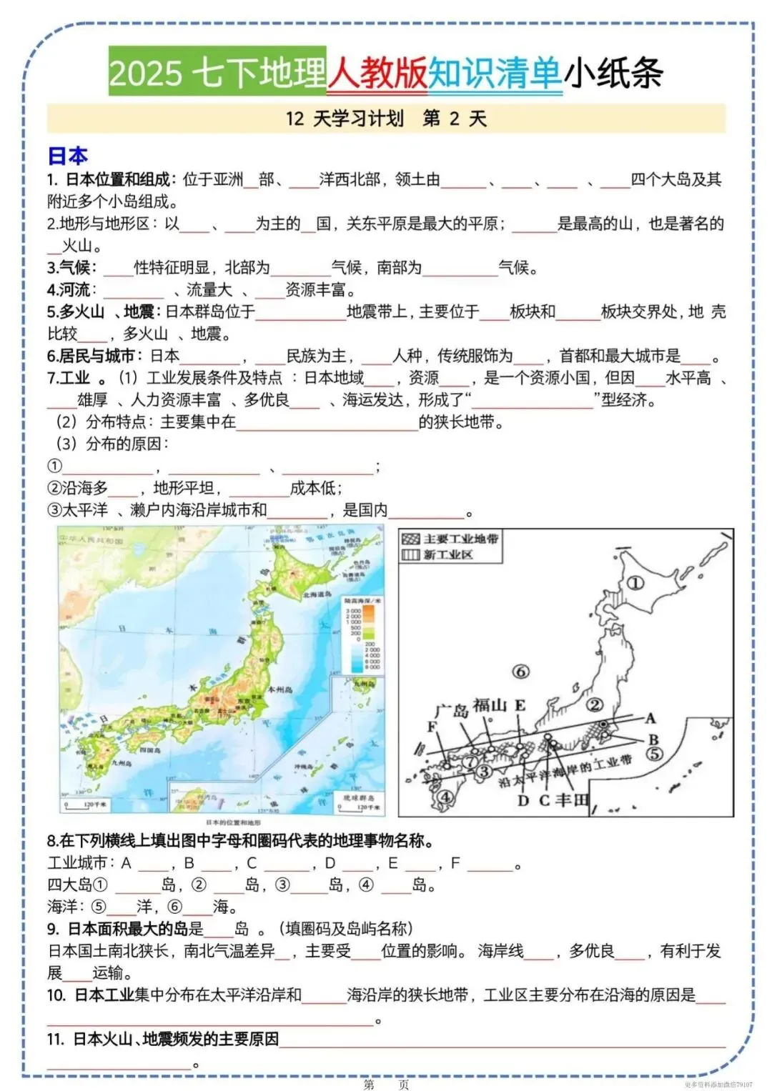 今天老师给大家整理了:七下地理知识清单|全册考点一页背完,电子版可打印!