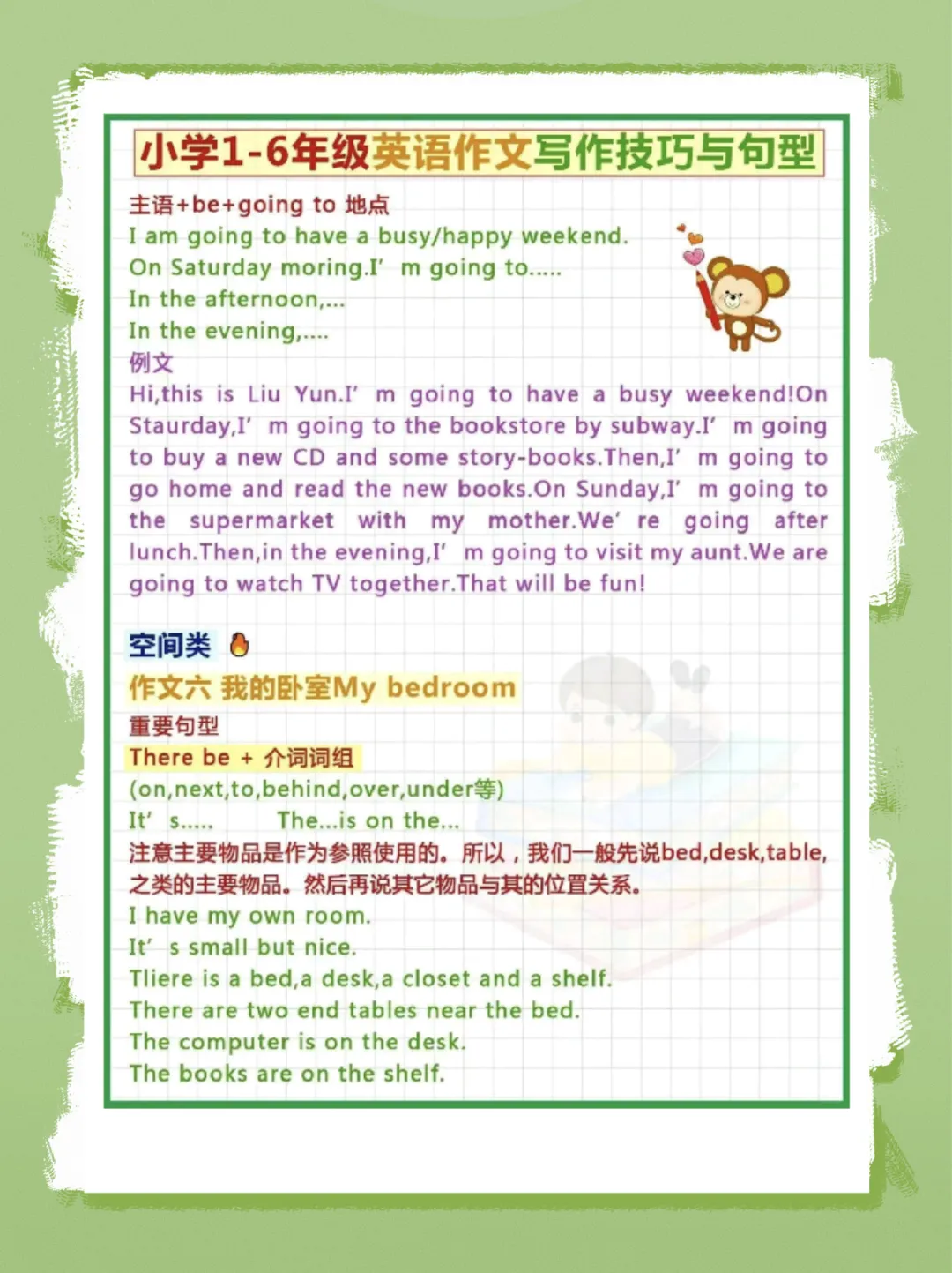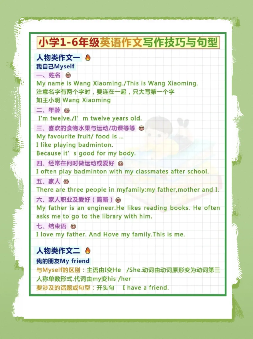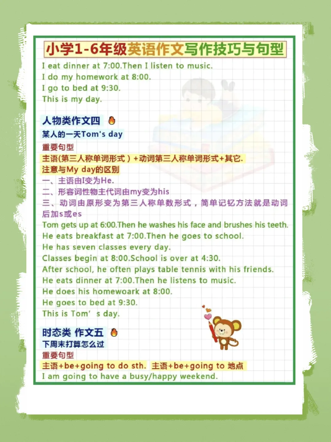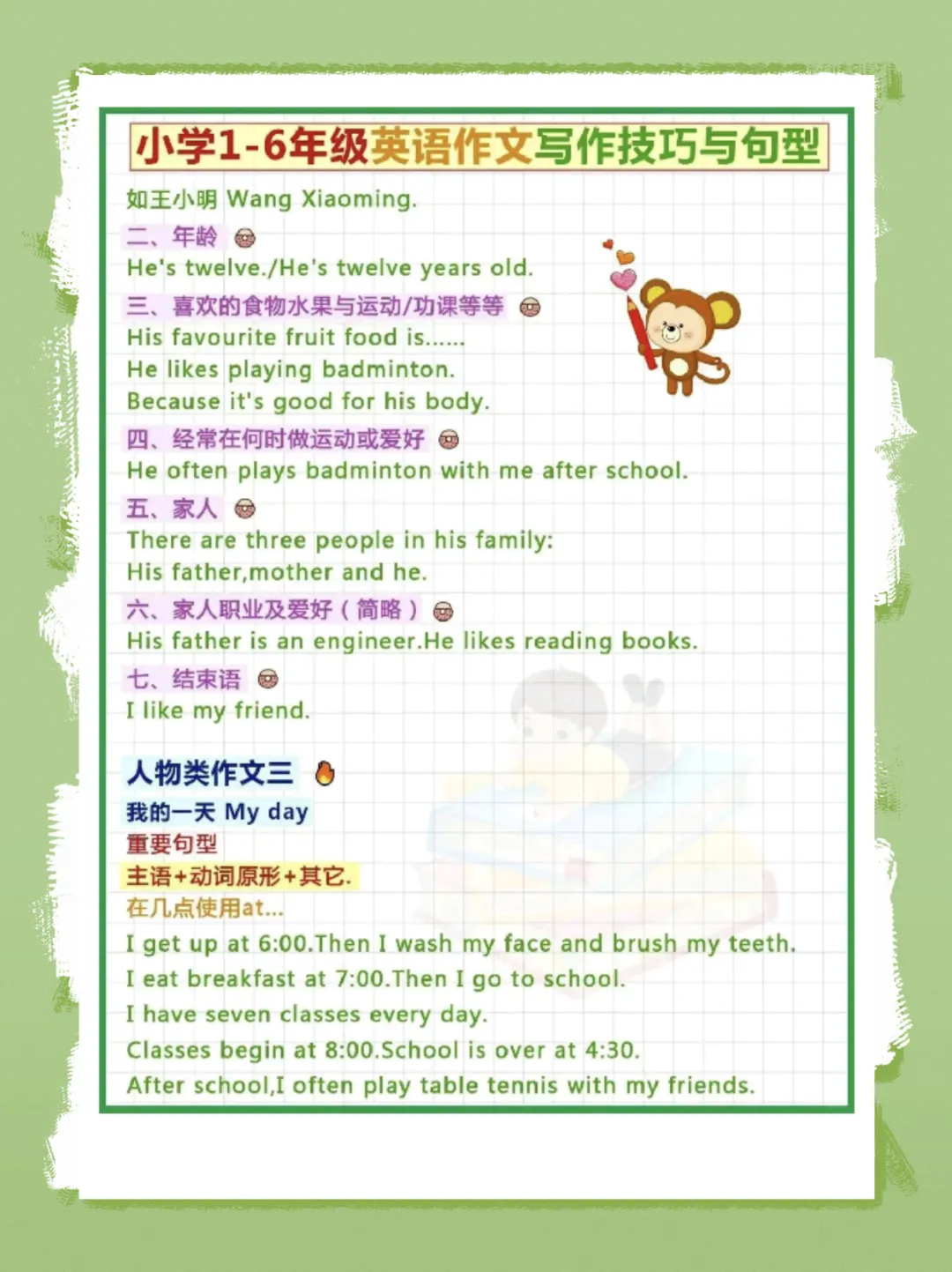 这里为您提供小学英语写作的实用技巧和经典句型。