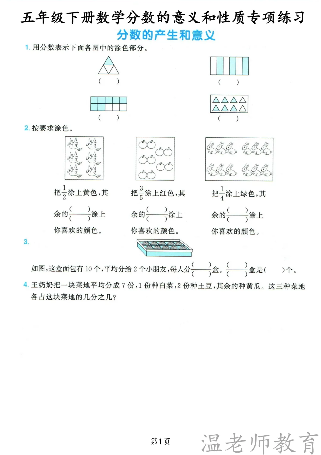 这份五下数学分数专项练习,全面覆盖分数意义、真假分数、基本性质、最大公因数、最小公倍数、约分通分、分数小数互化等核心考点,题型贴合课本、重难点突出,帮孩子扎实掌握分数单元,理清易错题型,稳步提升解题能力。有需要的家长抓紧领取上,让孩子练一练吧。