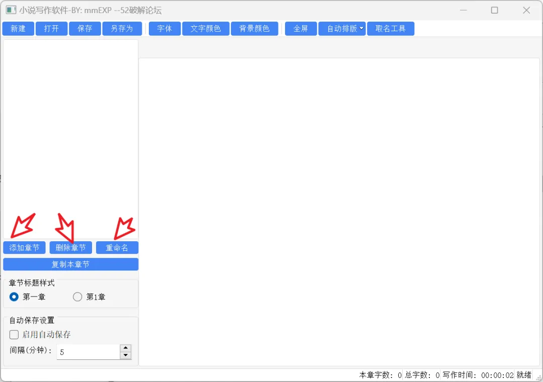这款软件是由吾爱大神@mmEXP开发的,主打的就是一个 绿色、免费、不联网、界面清爽。在它的左边栏我们可以【添加章节】、【删除章节】和【重命名】等功能可以说是一应俱全了。