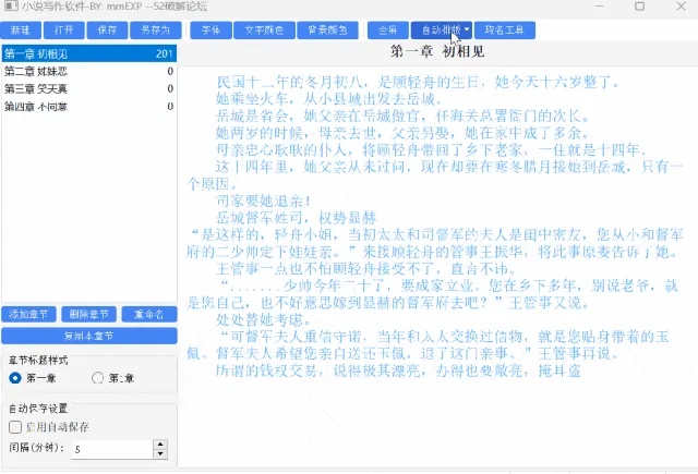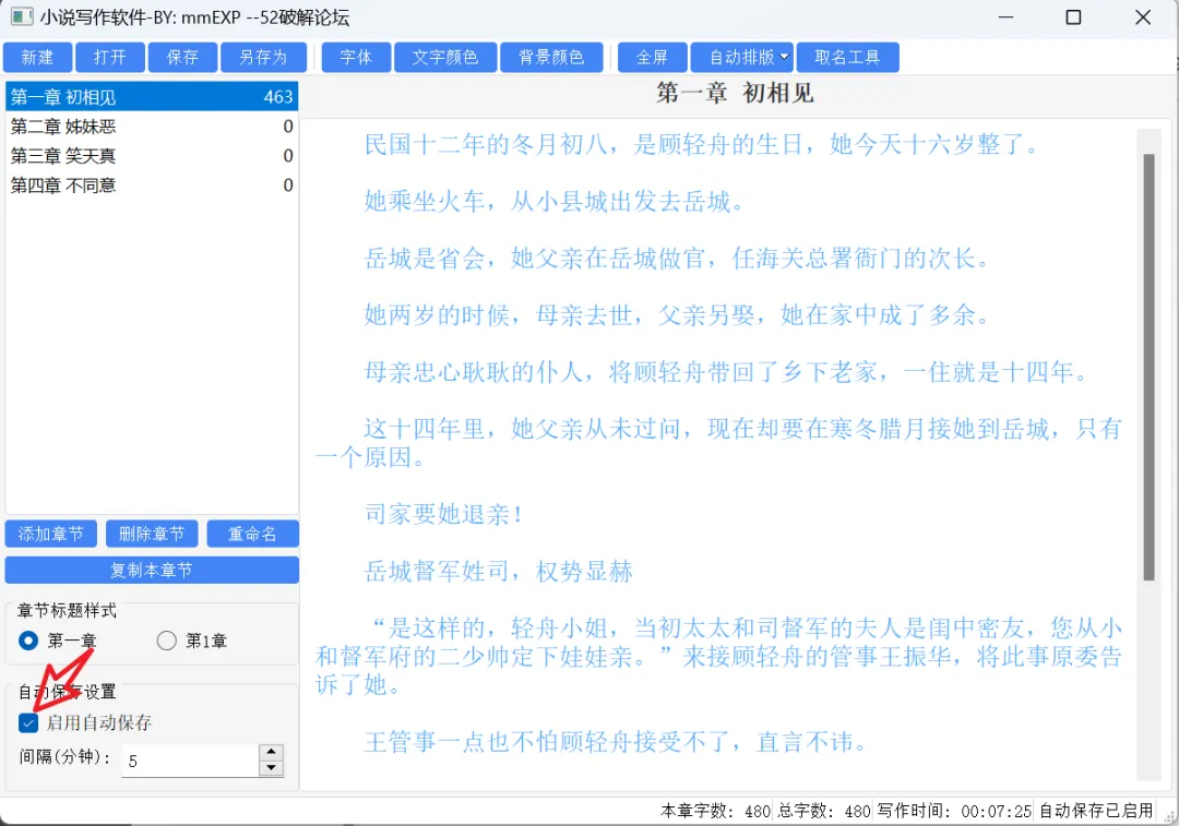 第三个功能就是它可以自动保存,告别写了一晚上结果系统或软件卡机没保存的悲剧,在这个软件上,你只要勾选左下角的“启用自动保存”功能,就可以自己设置好保存的时间间隔,实现自动保存,妈妈再也不用担心我忘保存了。