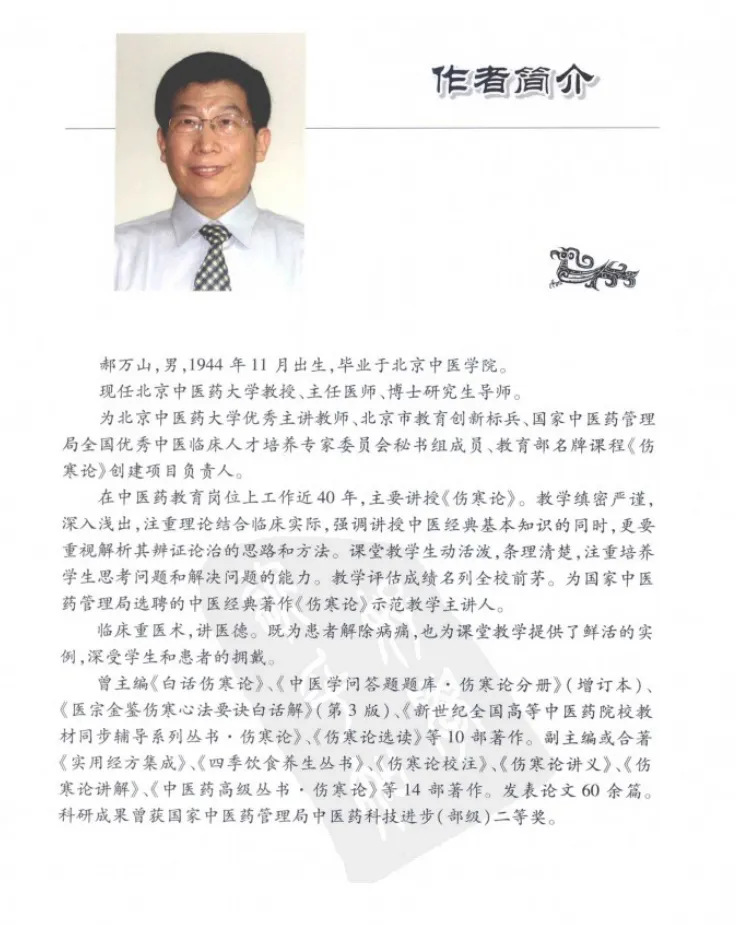 郝万山教授,1944年出生,毕业于北京中医药大学,现任北京中医药大学教授、主任医师、博士研究生导师。他是全国第六批名老中医药专家学术经验继承工作指导老师,国家中医药管理局中医经典著作全国示范教学《伤寒论》主讲人。