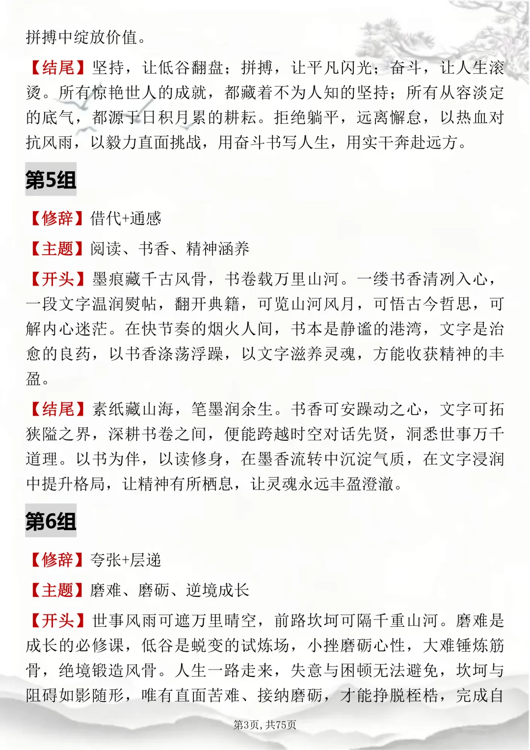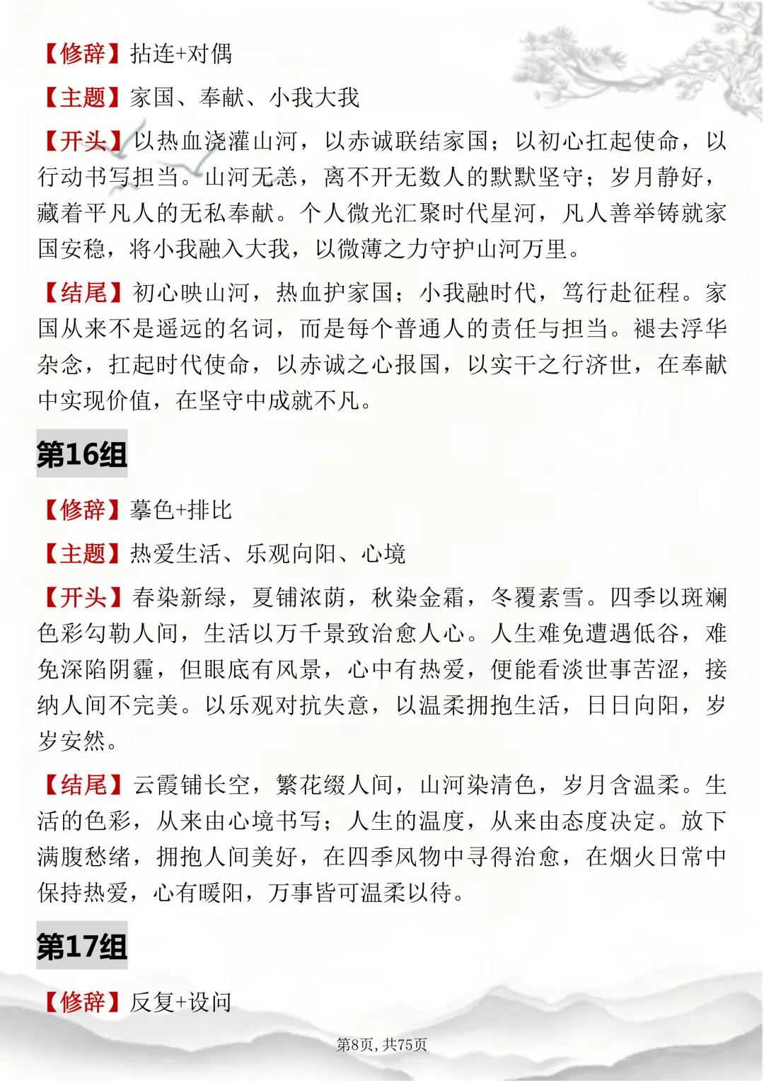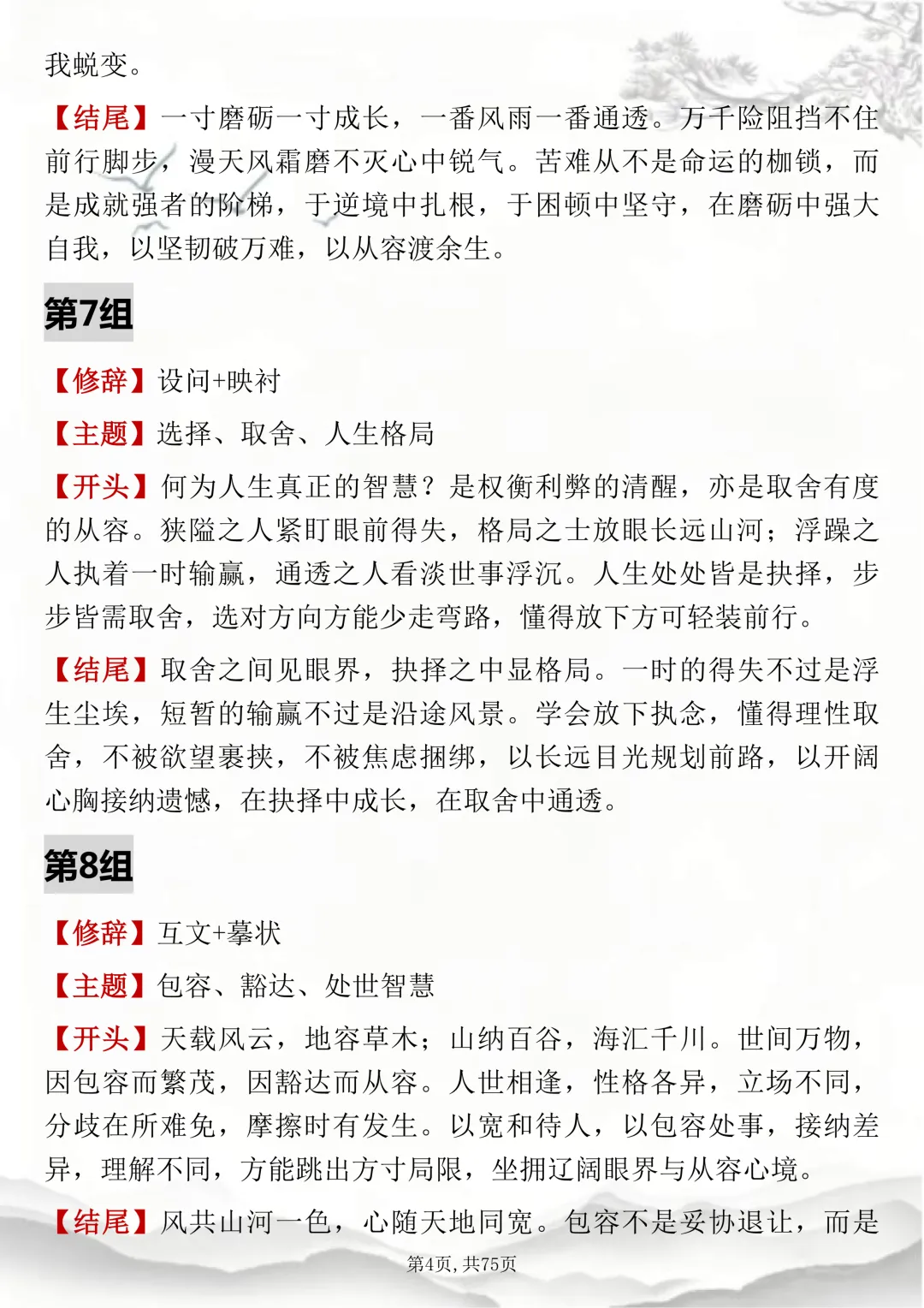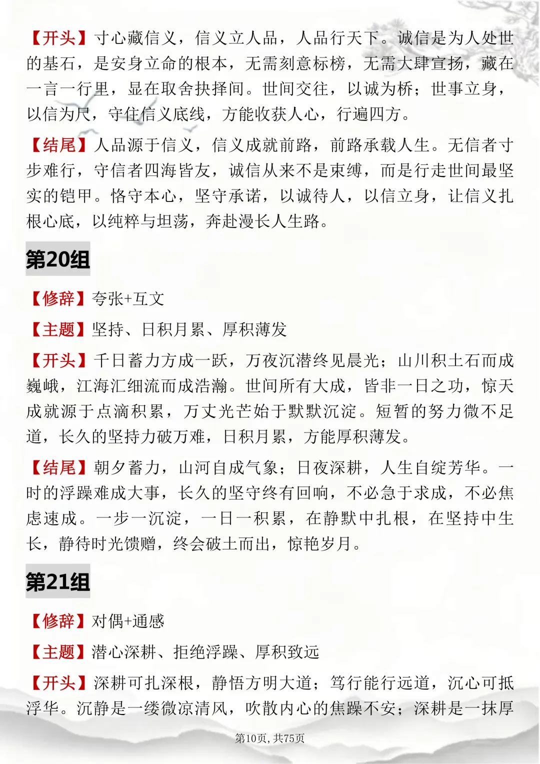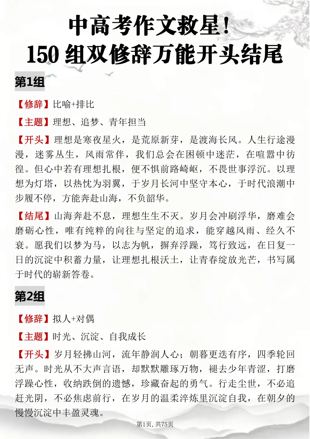 初高中通用,150组双修辞万能开头结尾,可打印出来背诵
