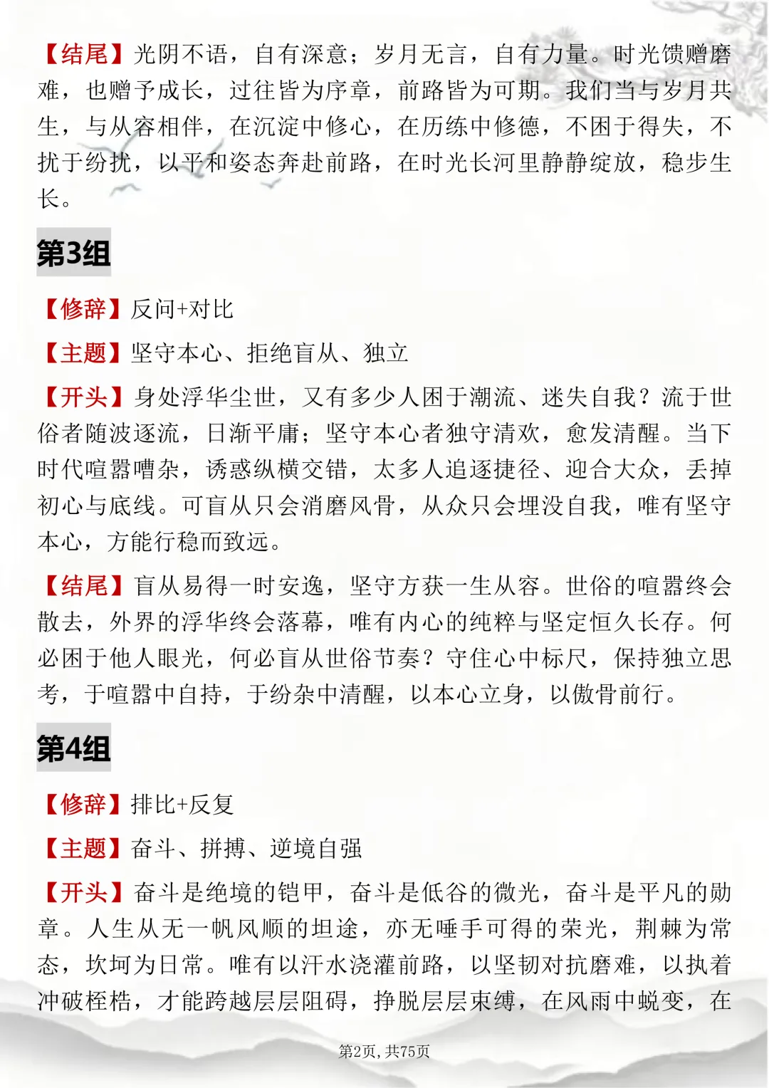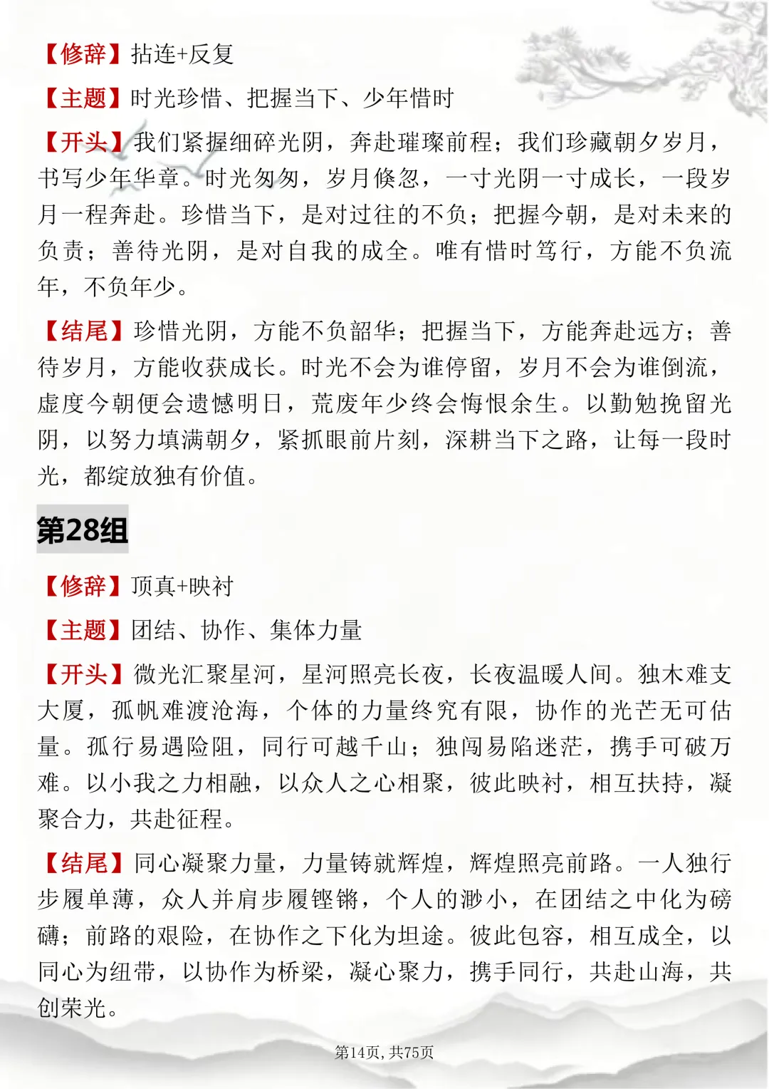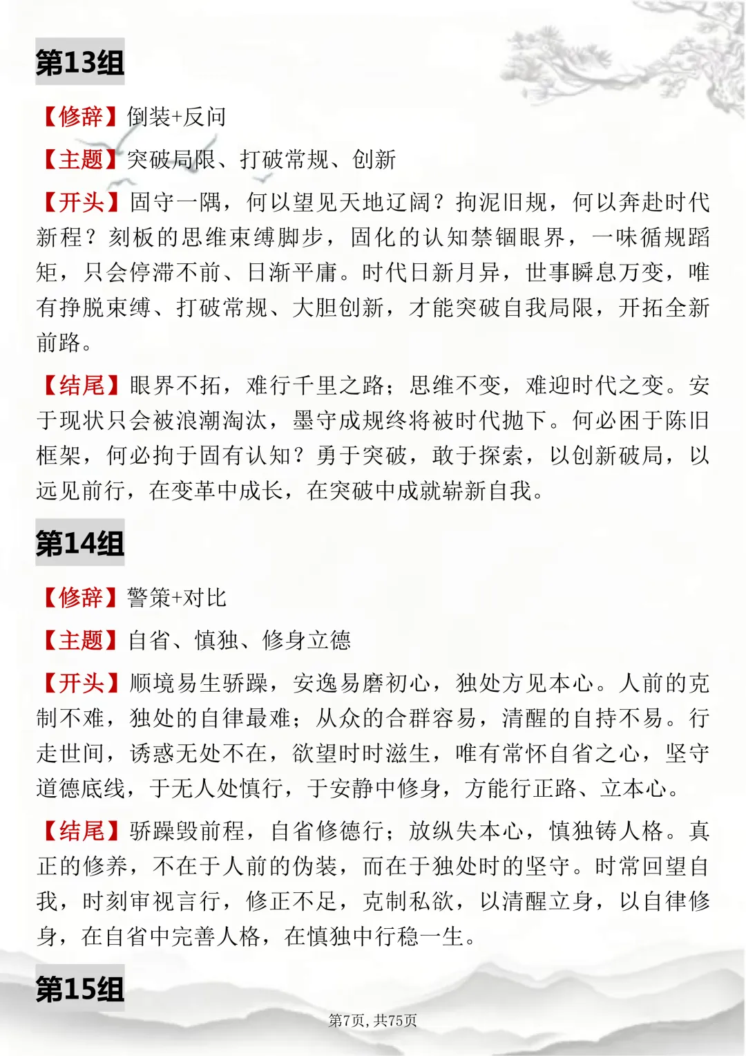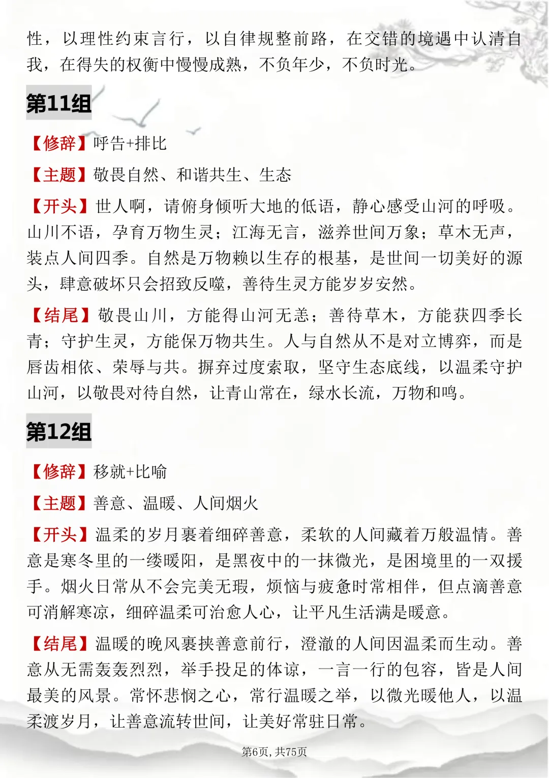 初高中通用,150组双修辞万能开头结尾,可打印出来背诵