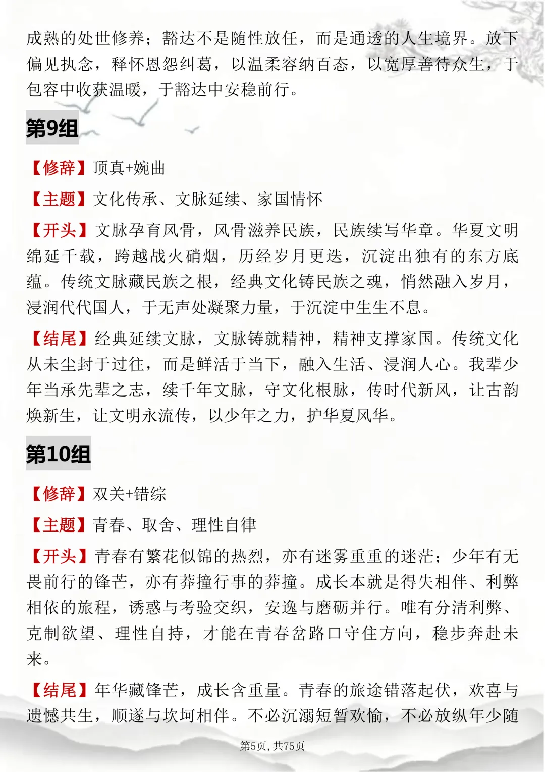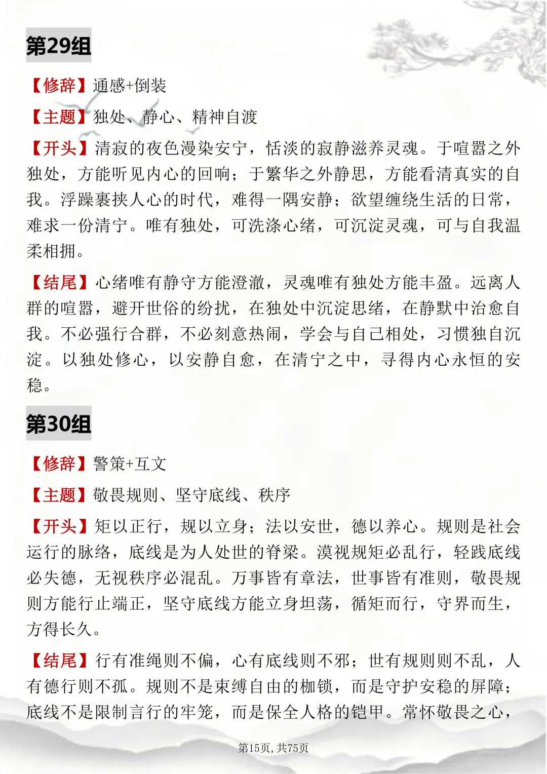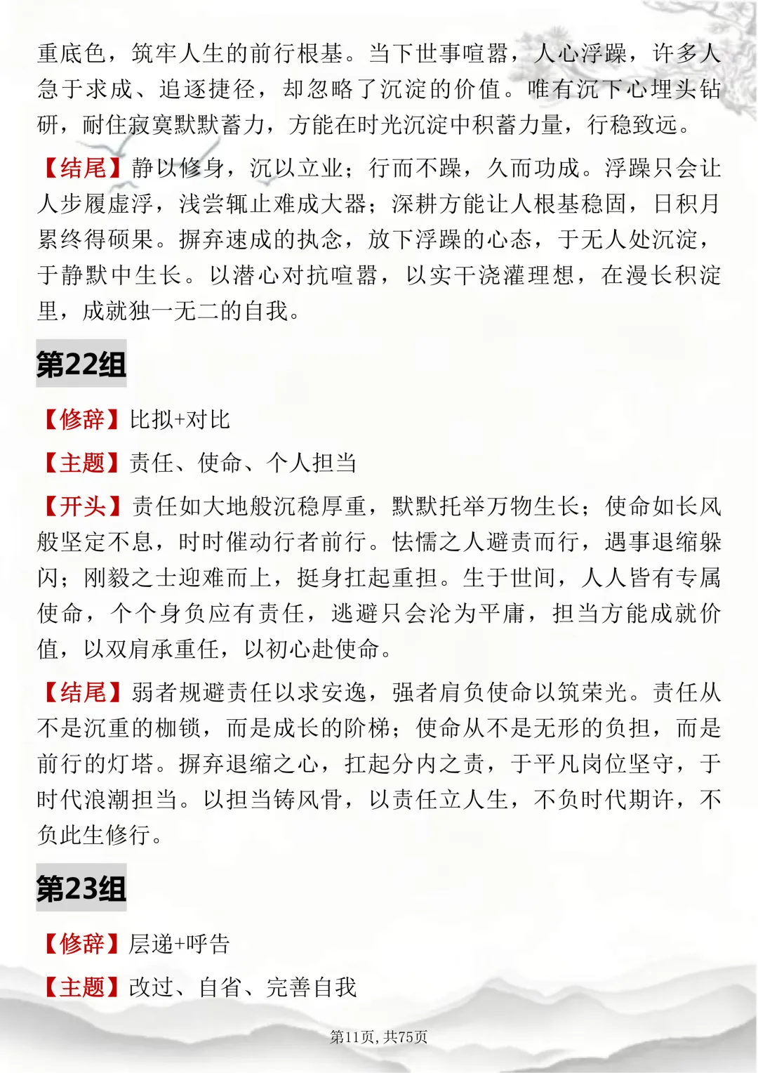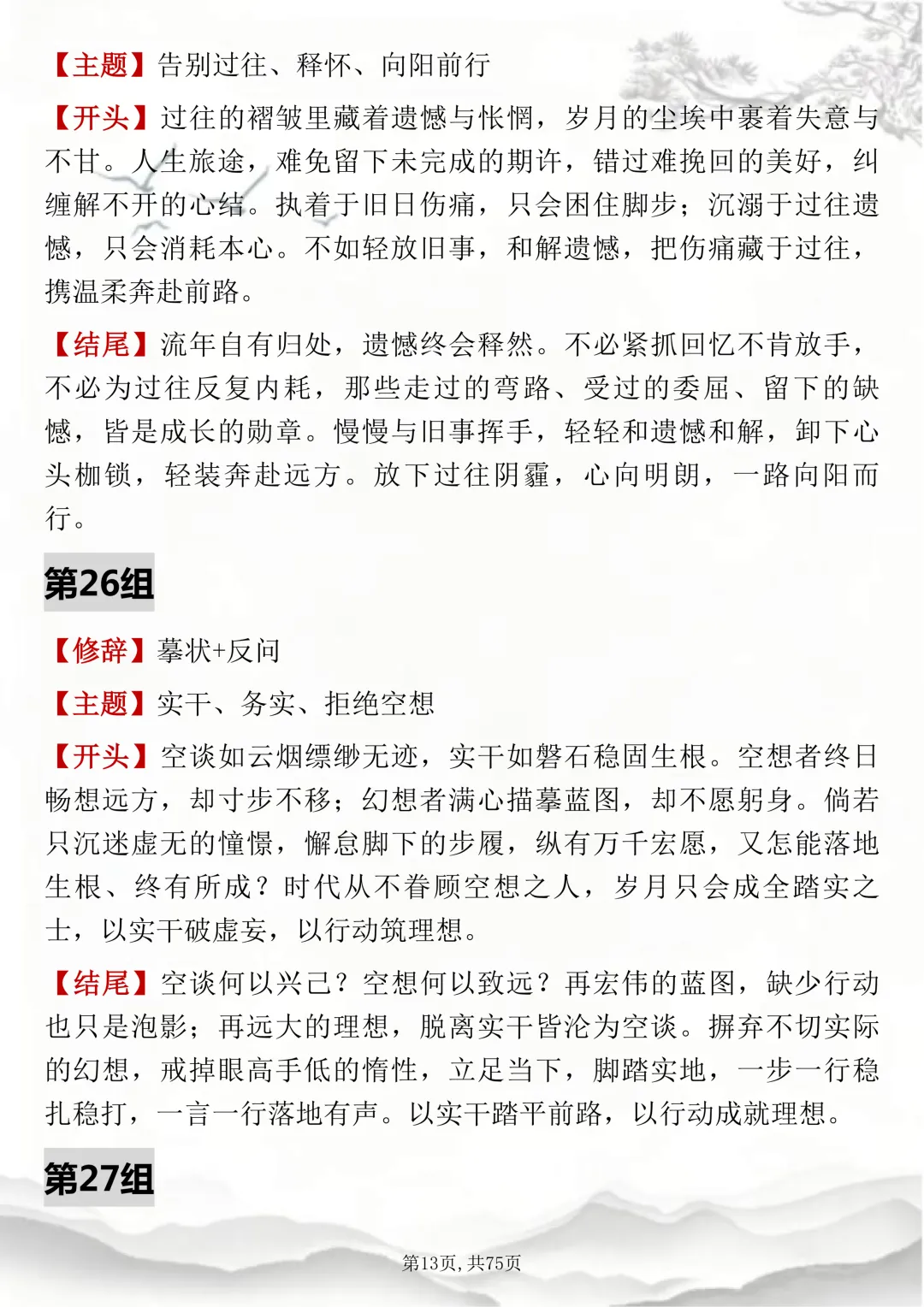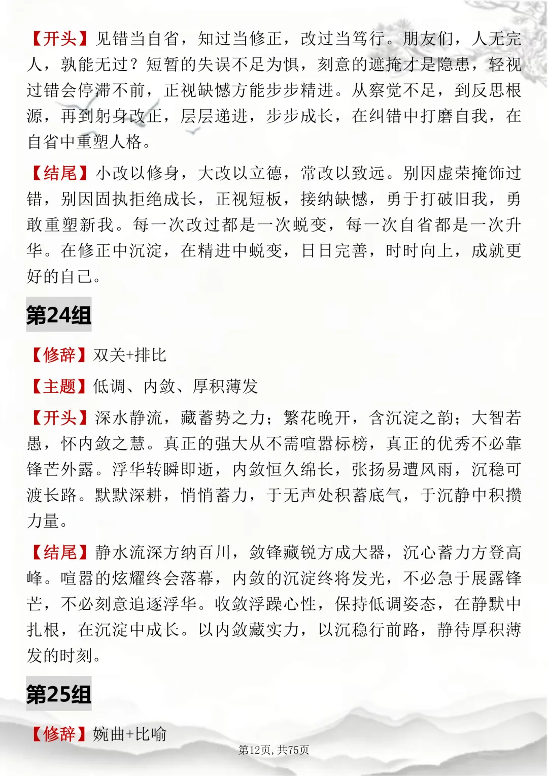 初高中通用,150组双修辞万能开头结尾,可打印出来背诵