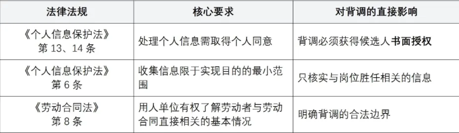 根据《中华人民共和国个人信息保护法》、《劳动合同法》等法律法规,背景调查必须遵循以下核心原则: