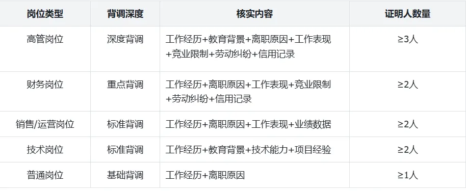 特别说明:涉密岗位、资金岗位需增加无犯罪记录证明要求;高管岗位建议委托第三方专业背调机构;应届生背调重点核实教育背景、实习经历。